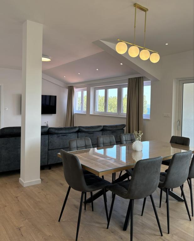 Ferielejligheder Nikola Skarica er på plads Duce i Omis. Bygningen har i alt 9 lejligheder med balkon. Stranden er 100 m fra lejligheden til stranden er der en tunnel, så for ikke at krydse vejen. Lejlighederne har en stor have med en stor have for gæster, der bruger grillen med udekøkken ,. Parkering er pesplatan og sikret til hver lejlighed. . For underholdning er tilgængelig bordtennis, ping-pong og for børn, vi har gynger.