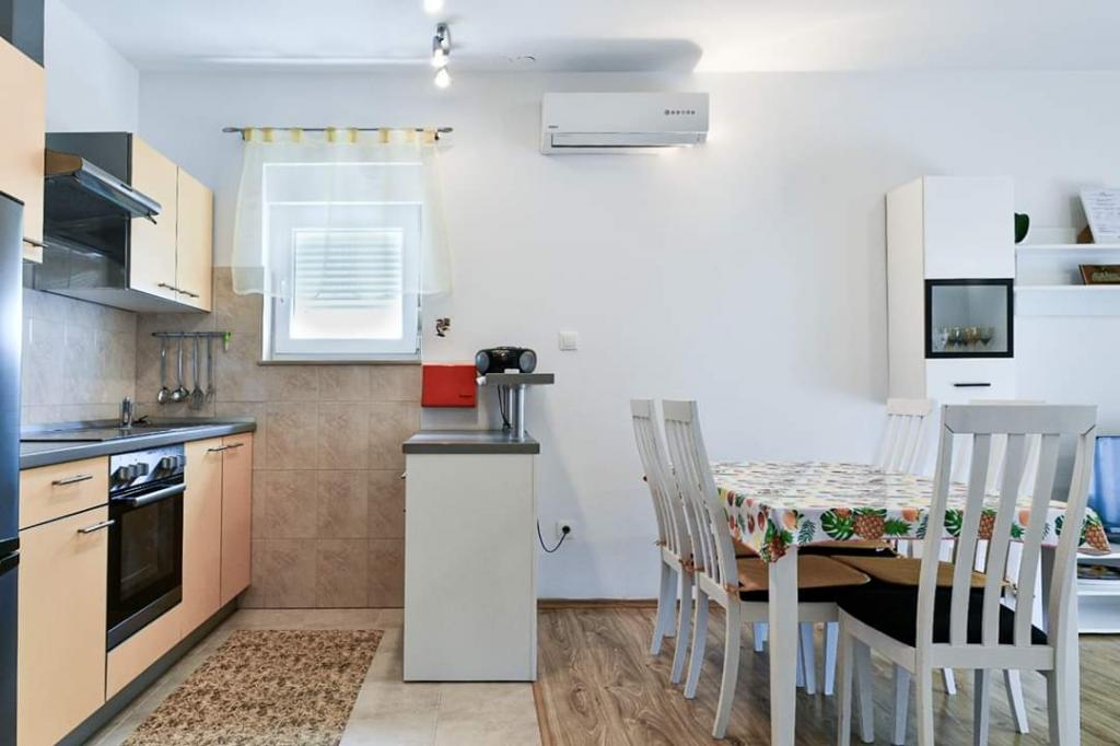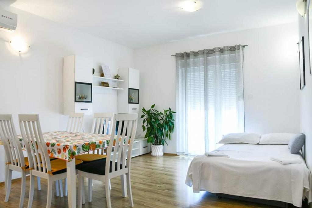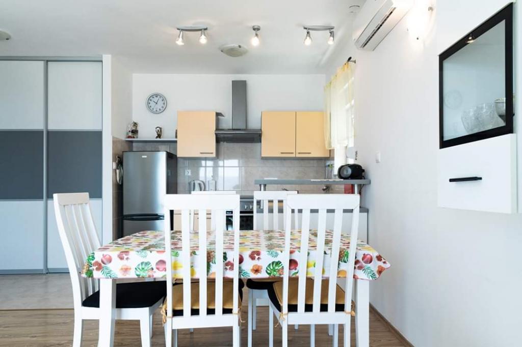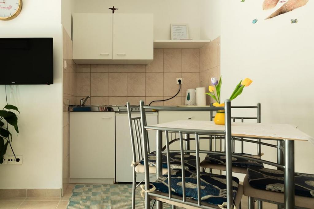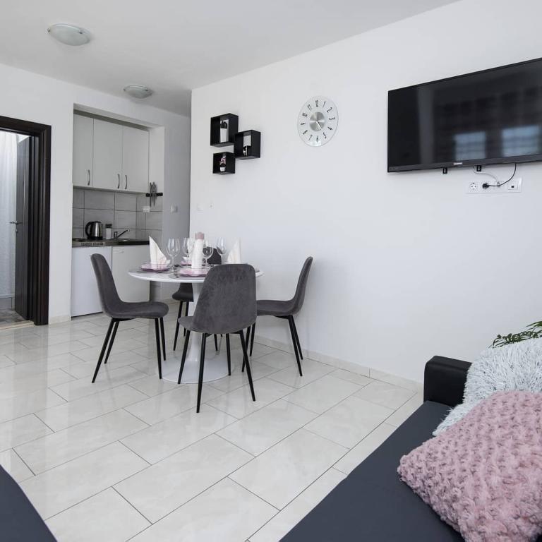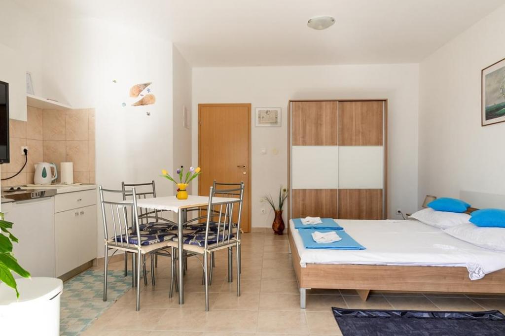 Helt renoverede lejligheder med aircondition og havudsigt i et roligt turiststed. Tæt på forskellige servicefaciliteter, butikker, barer, restauranter. På sandstranden sammen med det klare hav tilbydes forskellige sports- og rekreationsfaciliteter. Vores gæster har også rabatter på visse restauranter, rafting, sejlture gennem floden Cetina, bådture til øen Brac, jetski, rent-a-boat og banan- og tube-forlystelser for de yngste. Prisen inkluderer internet, SAT, privat parkering og brug af udendørs grill.
