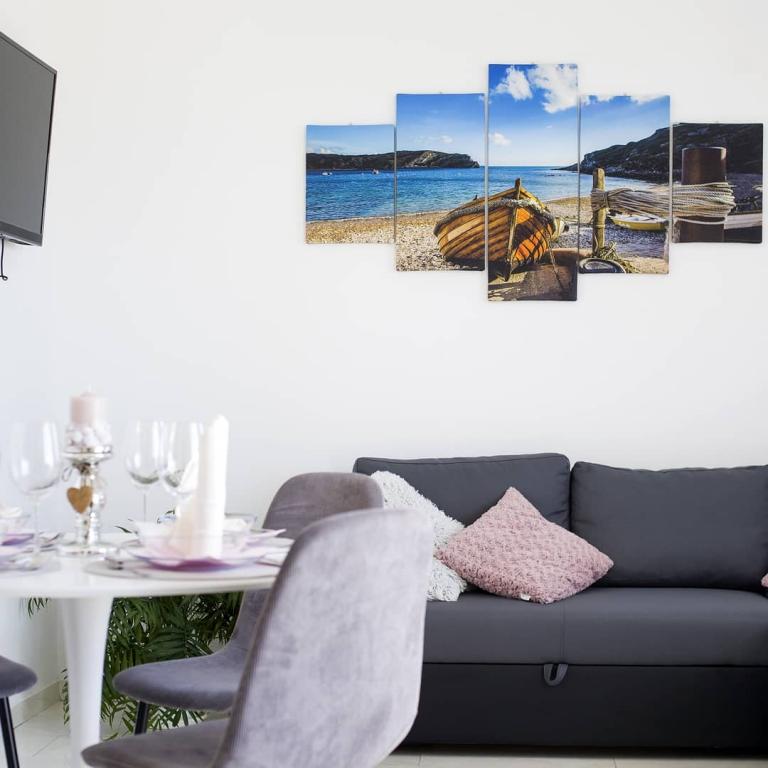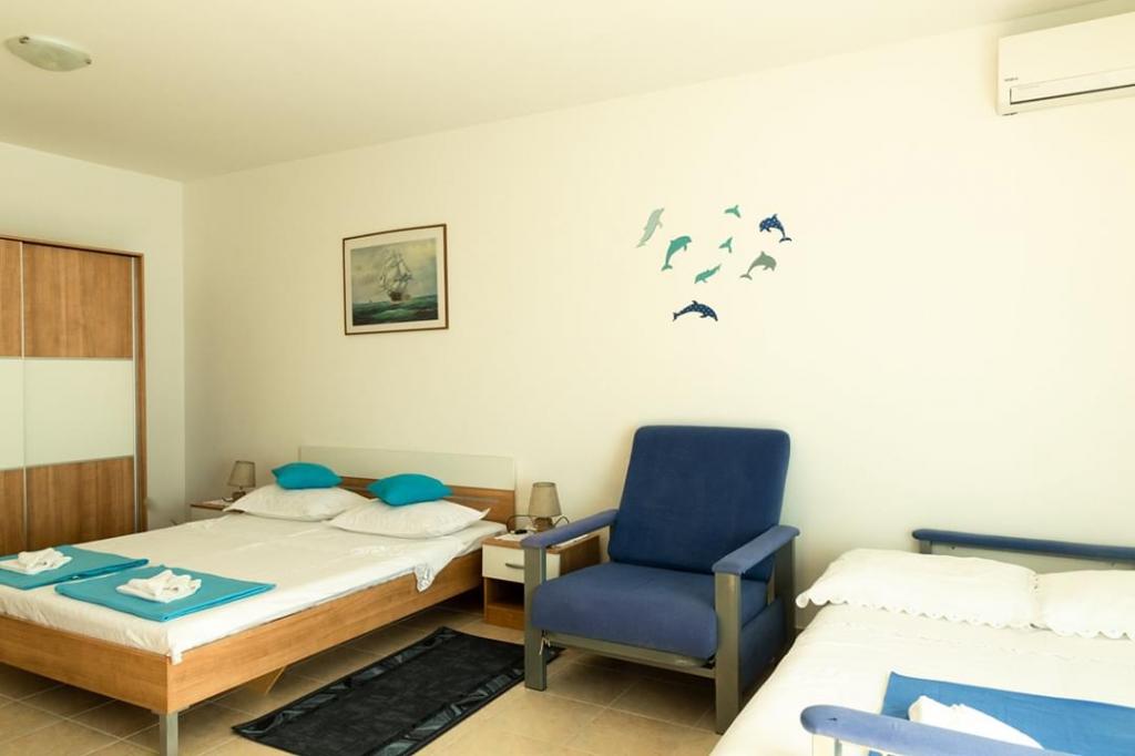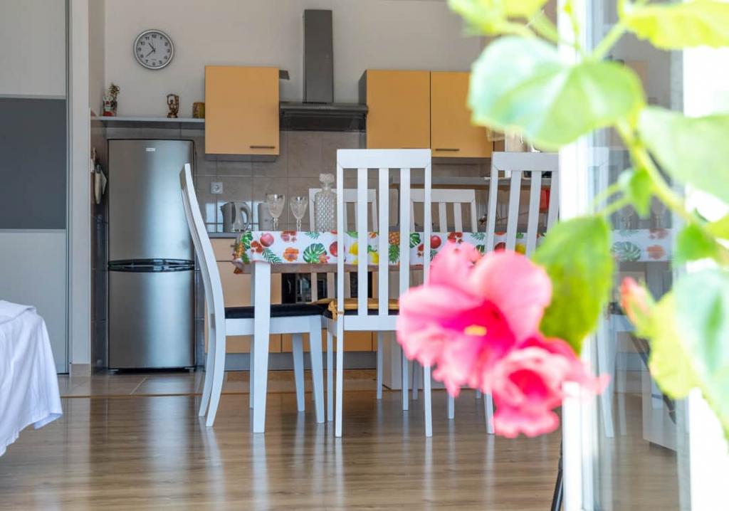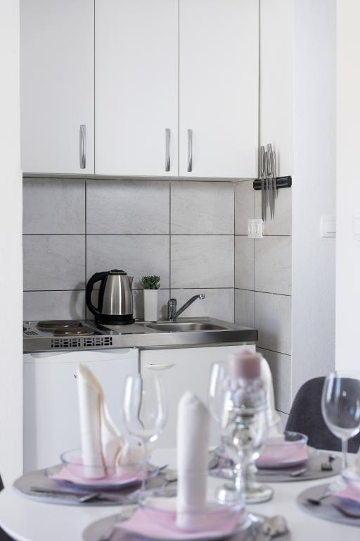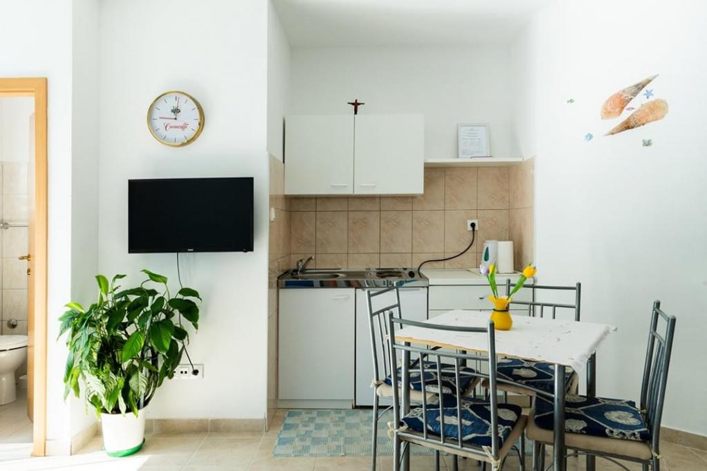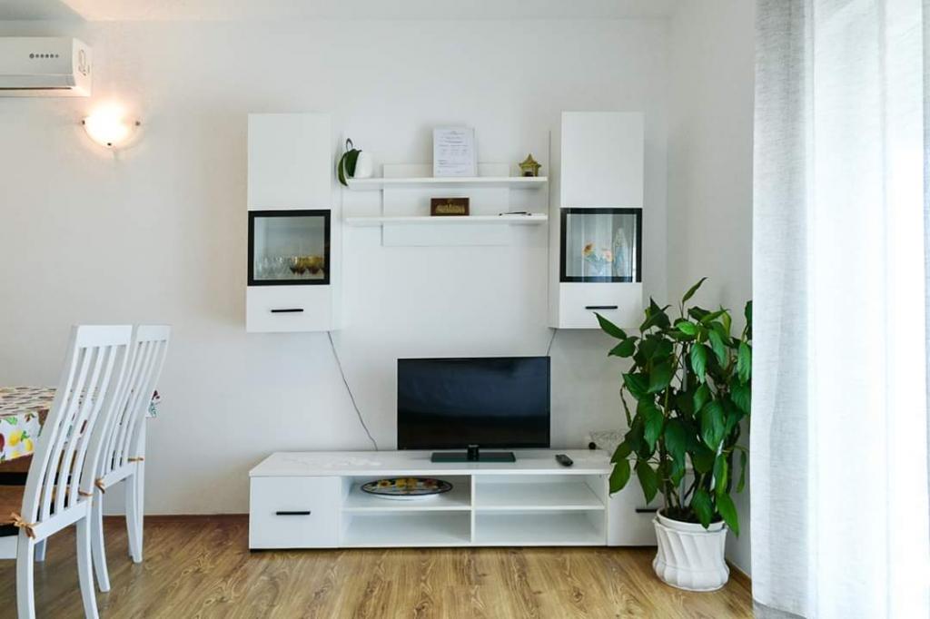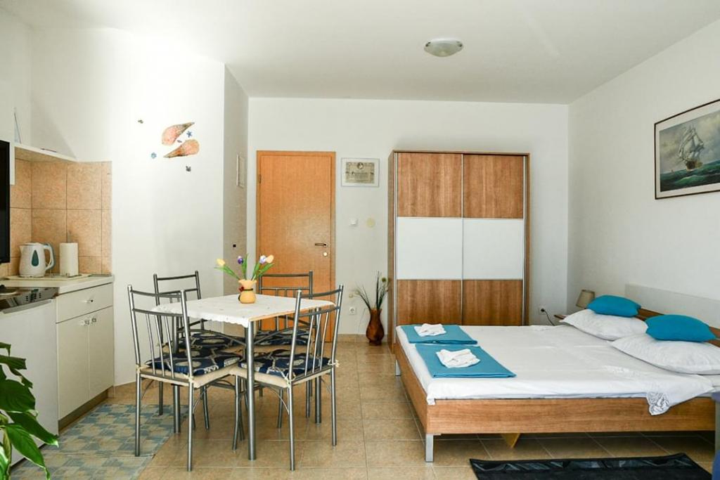 Helt renoverede lejligheder med aircondition og havudsigt i et roligt turiststed. Tæt på forskellige servicefaciliteter, butikker, barer, restauranter. På sandstranden sammen med det klare hav tilbydes forskellige sports- og rekreationsfaciliteter. Vores gæster har også rabatter på visse restauranter, rafting, sejlture gennem floden Cetina, bådture til øen Brac, jetski, rent-a-boat og banan- og tube-forlystelser for de yngste. Prisen inkluderer internet, SAT, privat parkering og brug af udendørs grill.