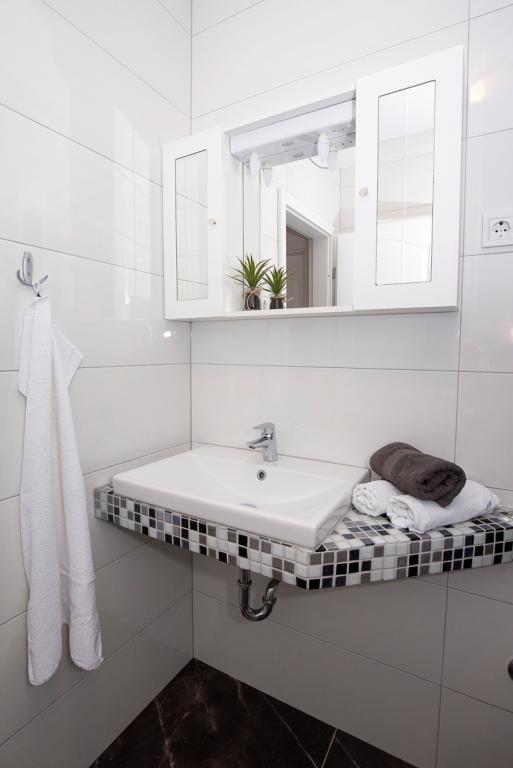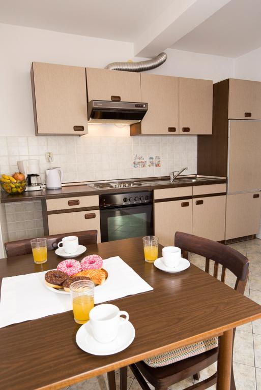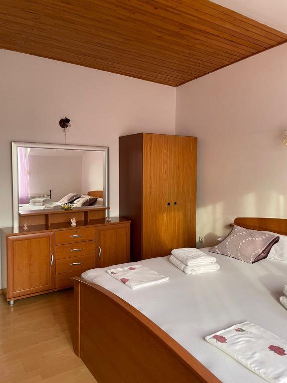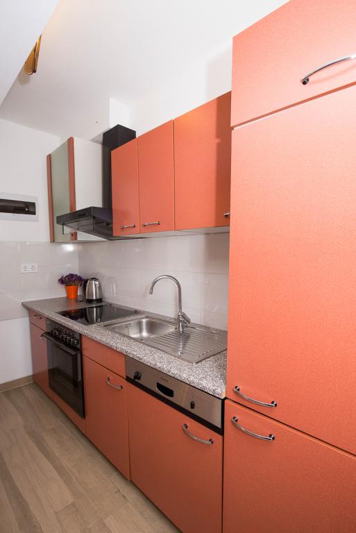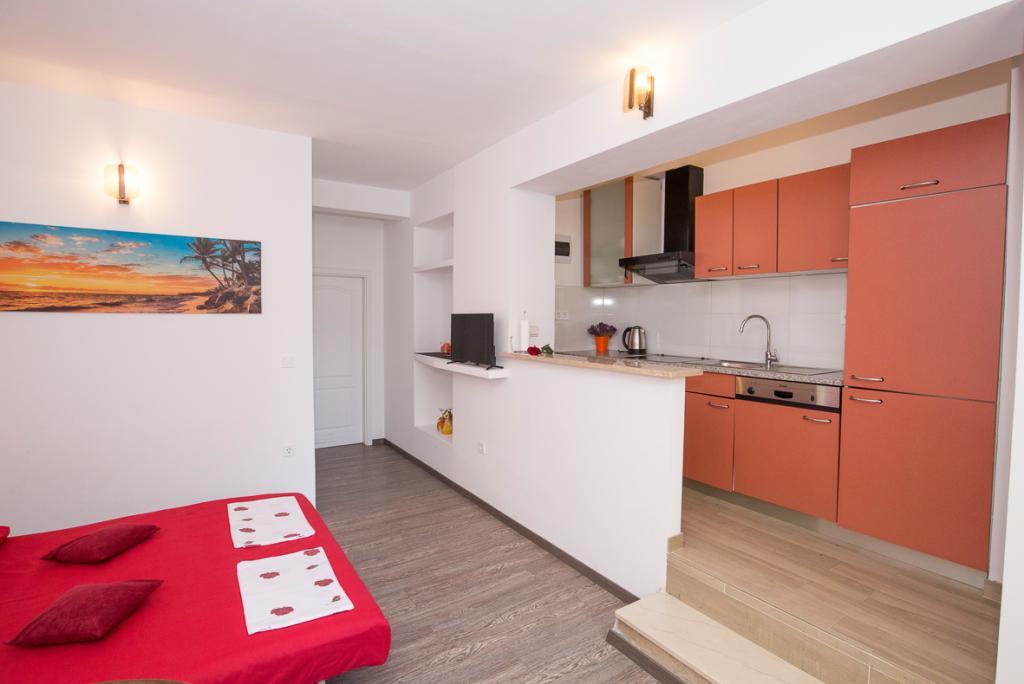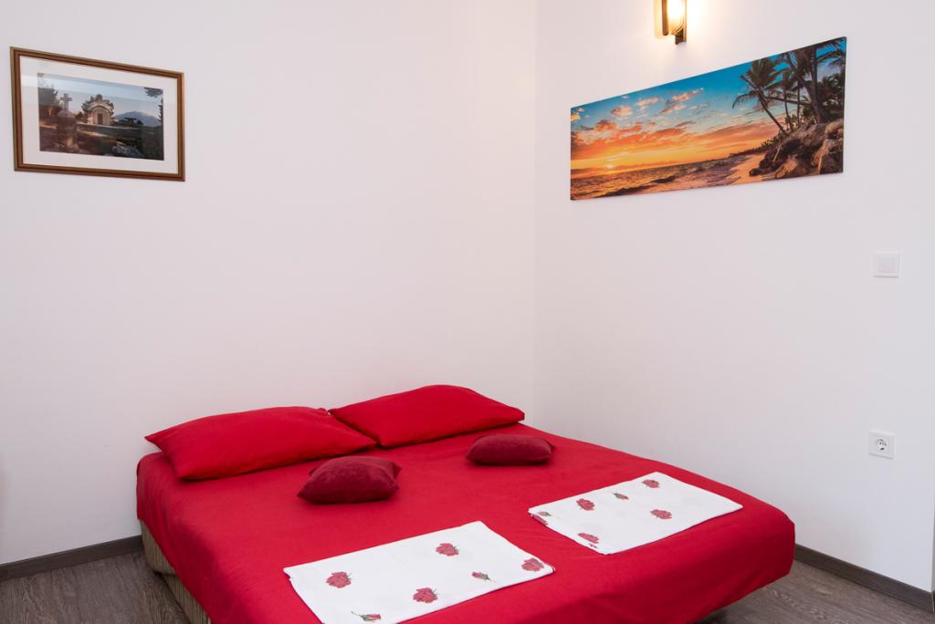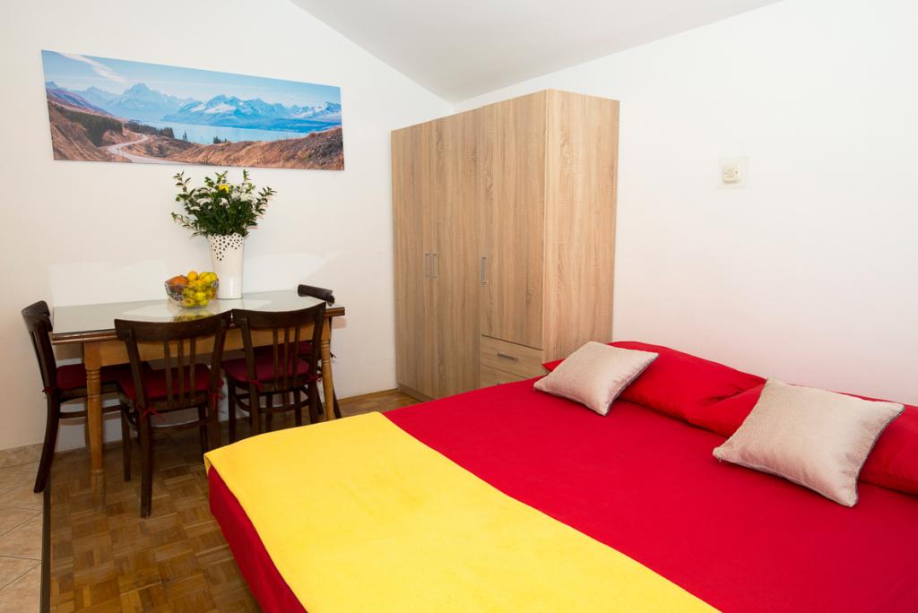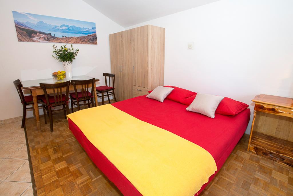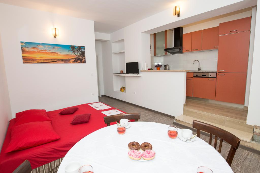 Du har parkering til din bil i gården. Lejligheden ligger i centrum af Duće, hver lejlighed er udstyret med aircondition, wi-fi er i hver lejlighed, vi er 1 minut fra stranden, stranden er sandet, anlægget har en stor parkeringsplads, aircondition er inkluderet i prisen. Turistskat er inkluderet i prisen. Der er en restaurant foran anlægget, og på højre side er der et Konzum-supermarked. Lejlighederne er pænt indrettede, og værten er altid til din tjeneste.