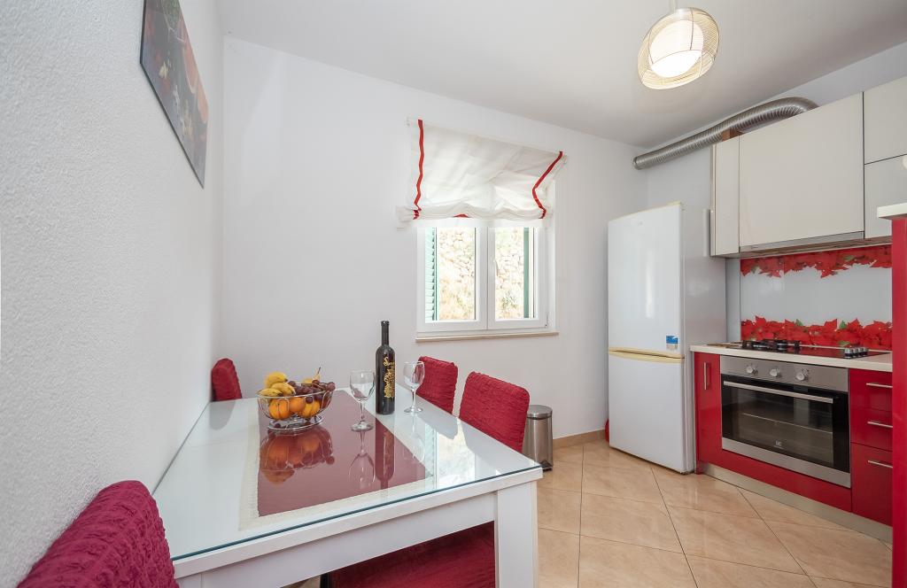 Lejligheder Rejo ligger i den lille by Dugi Rat, på Riviera of Omis, i et roligt miljø med smuk panoramaudsigt over havet og øen Brac. Fra midten af stedet er vi omkring 400m væk, og alle turistfaciliteter er placeret i bizini. Vi har 2 lejligheder til leje. Hver lejlighed er egnet til højst 4 personer, der er mest velegnet til 2 voksne og 2 børn. Begge lejligheder er beliggende på første sal. Hver lejlighed har 1 soveværelse med en stor dobbeltseng, en stue med en sovesofa til 2 personer, et køkken, et badeværelse, en balkon med havudsigt og en terrasse på nordsiden af huset.