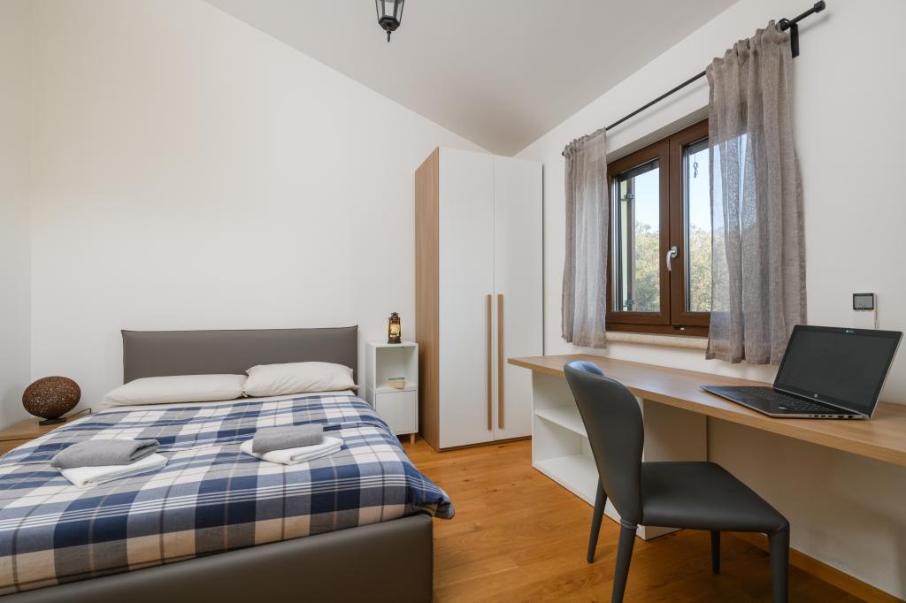 Lejlighed Ana Bruna, beliggende på første sal i et nybygget fritliggende familiehus, er beliggende i en rolig del af Fazana, omgivet af olivenlunde og vinmarker. Moderne og fuldt udstyret, det tilbyder komfortabel indkvartering til alle, der ønsker afslapning og sjov. Den yderste del af gården er indrettet til afslapning og socialt samvær, og der er to parkeringspladser. Selve bygningen ligger 10-15 minutters gang til stranden eller Fažana havnefronten. Fažana ligger i den sydvestlige del af Istrien, og er omgivet af talrige anlagte og naturlige strande. I umiddelbar nærhed af Fažana ligger Brijuni Islands National Park, som vil fortrylle dig med sin natur og kulturelle og historiske rester. Rigtige sommeranimationsprogrammer og -begivenheder i Fažana, samt muligheden for at vælge forskellige rekreationer, vil sikre en uforglemmelig sommer for alles smag.