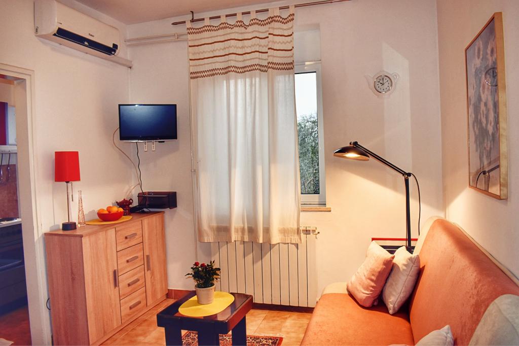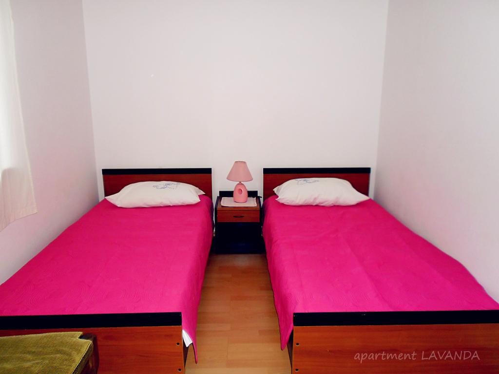 Apartment Lavanda 18 er beliggende i et roligt område i landsbyen Valbandon. Det ligger 850 m fra havet og 2 km fra centrum af Fažana. Det tager 15 minutter til fods at nå den nærmeste strand med naturlig skygge og en promenade. Lejligheden er beliggende i stueetagen af et familiehus omgivet af grønne områder og en stor gårdhave (ideel til børns leg og hvile og afslapning med en grill). I gården er der en privat parkeringsplads med naturlig skygge (til 2 biler). Lejligheden har egen indgang og tilbyder overnatning for op til 4 personer. Den består af: entre, soveværelse med dobbeltseng, soveværelse med 2 enkeltsenge, badeværelse, køkken, spisestue, stue og stor terrasse. Køkkenet er fuldt udstyret (komfur med ovn, emhætte, køleskab med fryser, opvaskemaskine, mikroovn, elkedel, kaffemaskine, blender, juicer, nok retter til at tilberede og servere mad. Andre faciliteter: satellit-tv, WiFi, to klimaanlæg, skrivebord til en bærbar computer.