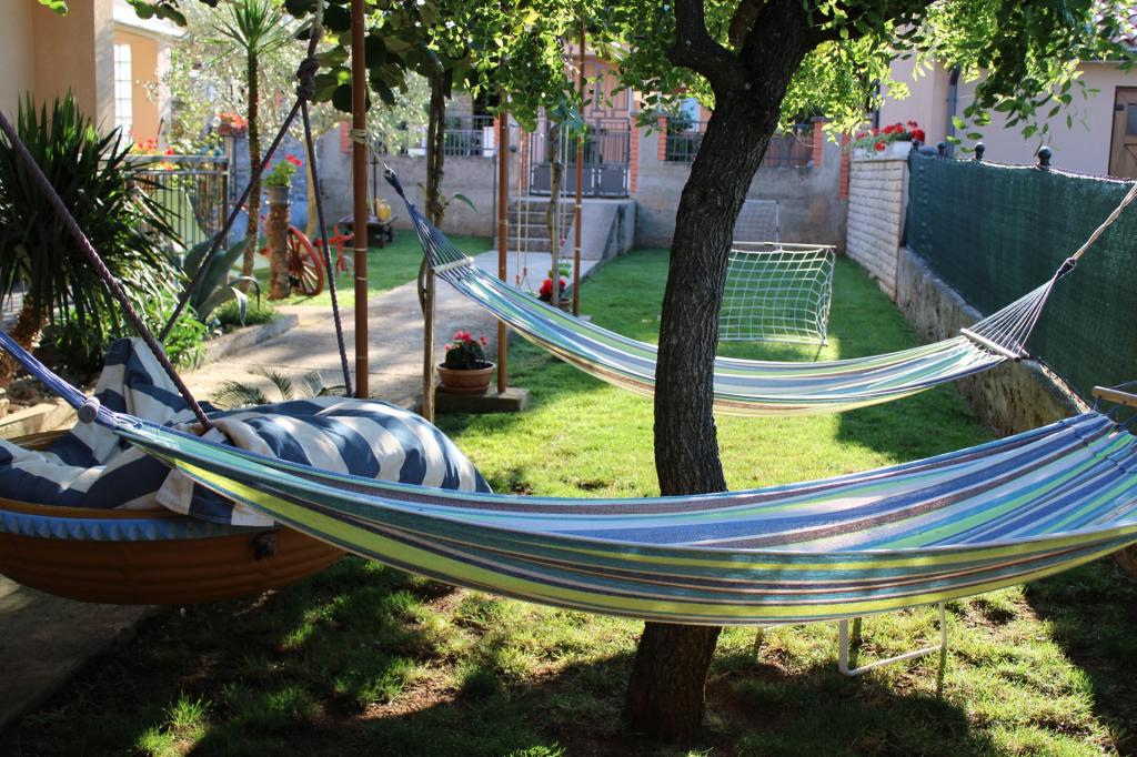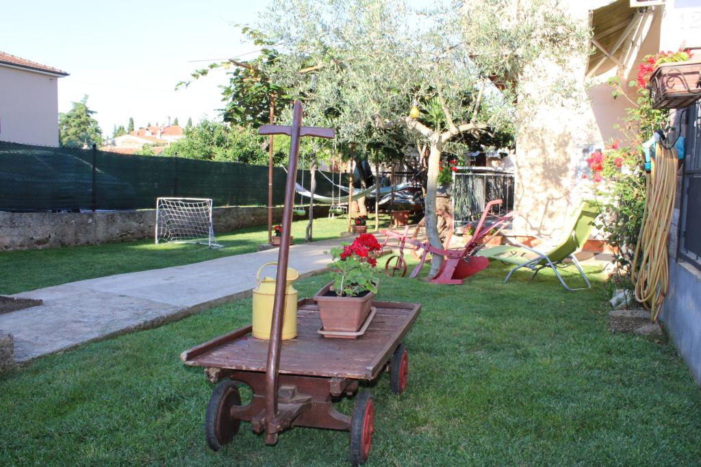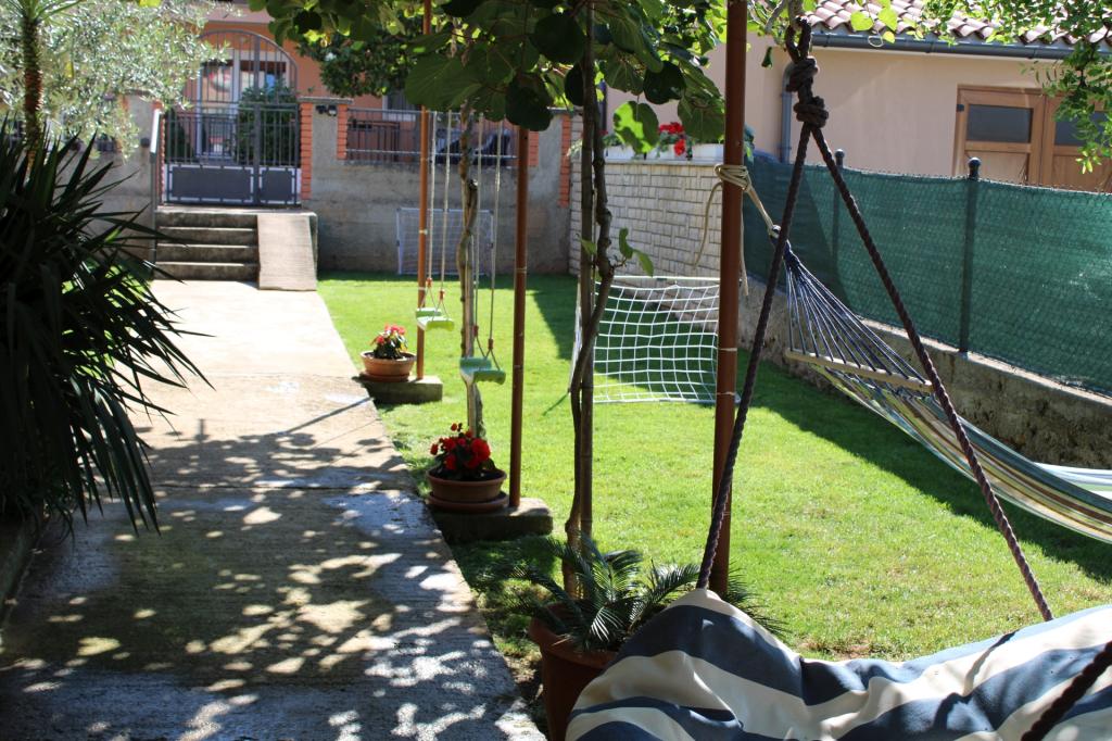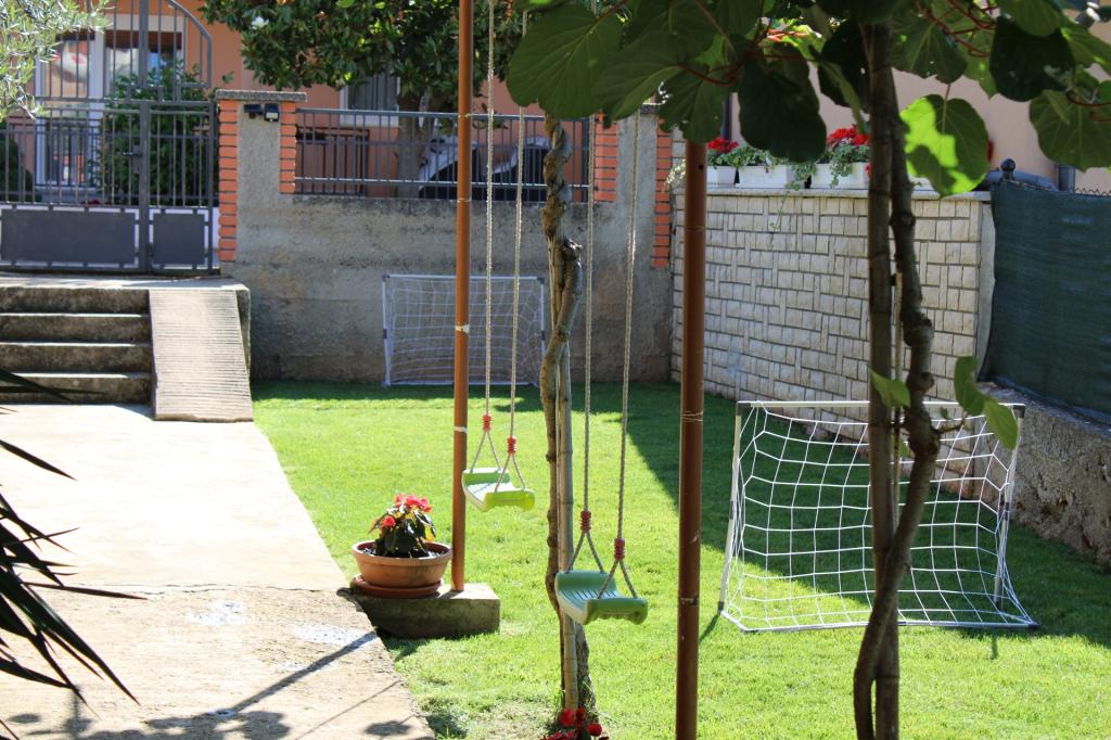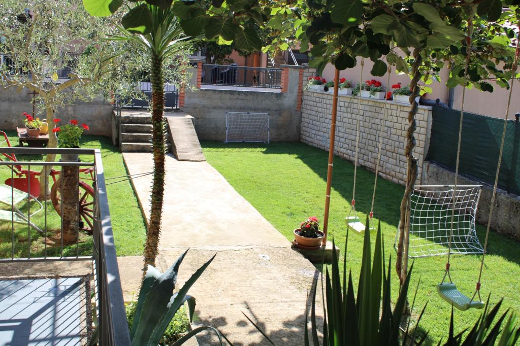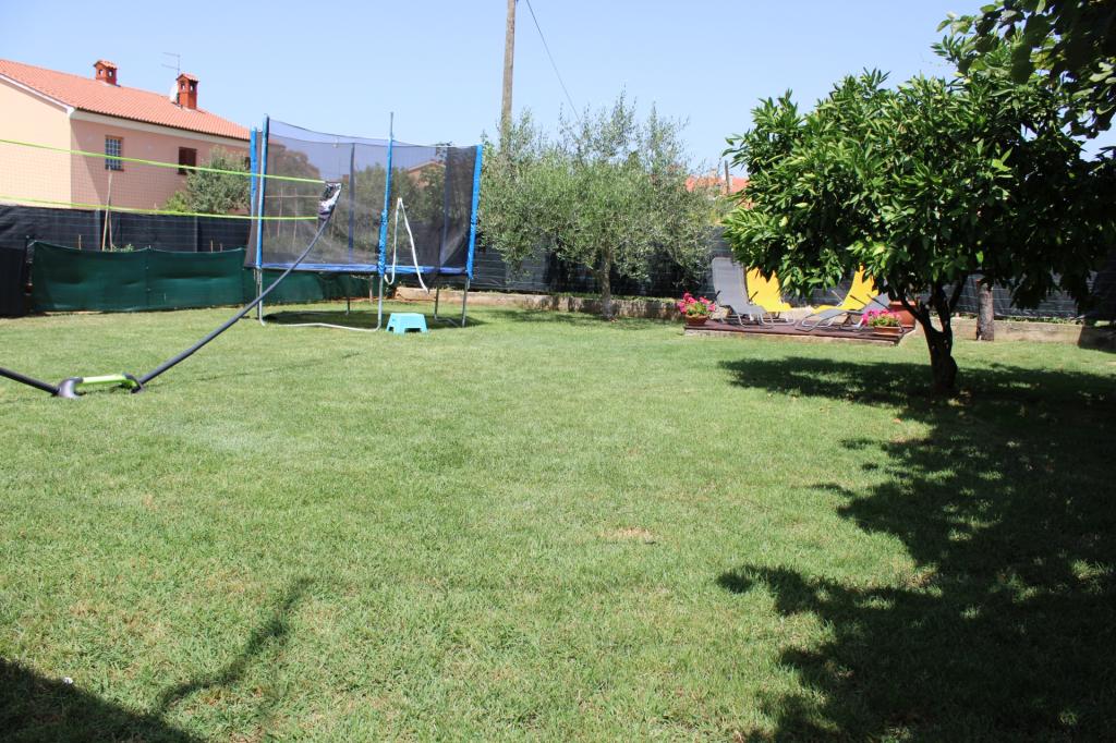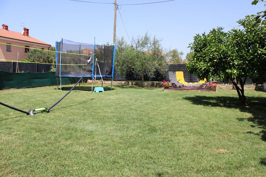 Lejligheden har fuldt udstyrede 3 soveværelser, 2 badeværelser, 1 køkken og stue med stor sofa, så der var plads nok til to familier. Desuden kan du spise udenfor på den overdækkede terrasse med stort bord. Du kan også gemme dig her for solen. Den store have med gynger og en trampolin er fantastisk til børn. Ejeren har her små skildpadder, som er så søde. Det er ikke langt fra havet og fra byens centrum med pubber og restauranter, men stadig har du her privatliv uden støj. Begge værter er virkelig hjælpsomme og venlige. Vi boede her to gange, og vi kommer helt sikkert tilbage igen, når vi besøger Fažana!
