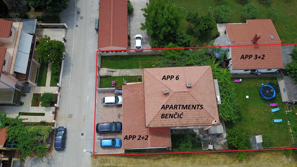 Apartments Benčić er beliggende i en rolig del af Fažana. Faciliteterne er fuldt udstyrede og ligger kun 5 minutters gang fra centrum og strandene. Alle tre lejligheder ligger i stueetagen. Stor lejlighed 6+2 består af 3 soveværelser, to badeværelser, køkken og spisestue, stue og depotrum. Lejligheden har to terrasser med siddepladser. Lejlighed 2+2 har et soveværelse med dobbeltseng, stue, køkken og spisestue, badeværelse og egen terrasse med siddepladser. Lejlighed 2+2 har et soveværelse, stue, køkken og spisestue, badeværelse, depotrum og terrasse med sofa. Alle tre lejligheder har separate terrasser med havemøbler. Parkering er til rådighed og er placeret på selve bygningen. Grillen er placeret i gården og er tilgængelig for alle gæster i vores lejligheder, samt yderligere faciliteter: liggestole, gynger og en trampolin til børn.