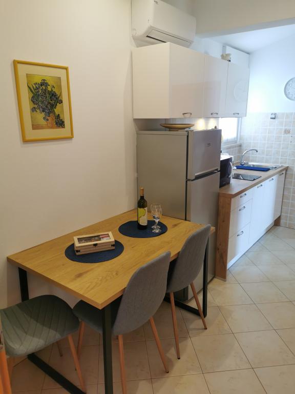 Vi tilbragte en vidunderlig 12 dage her med 2 børn. En legeplads og en have (meget velholdt) ved huset er en ekstra fordel. Lejligheden er udstyret med alt hvad man skal bruge (der er også vaskemaskine og det er et stort plus :D), den er rummelig, ren og her er skønt at slappe af. Bag huset kan du bruge grillen. Ejerne er hjælpsomme og flinke. Du kan gå til stranden bag campingpladsen, men det var ikke vores drøm (ingen skygge). Vi foretrak at købe en langtidsbillet til byens parkeringspladser og køre til centrum til stranden, hvor der er legeplads og restaurant. Jeg anbefaler Irena lejlighed af hele mit hjerte. Tak skal du have.