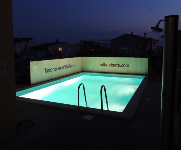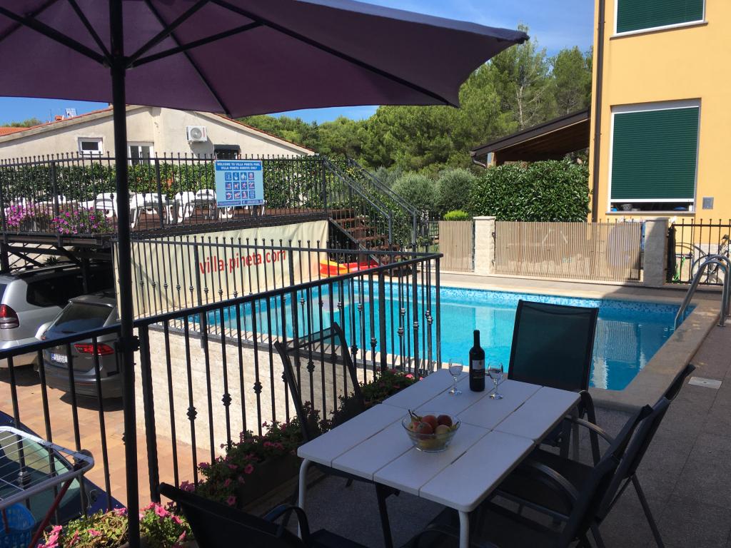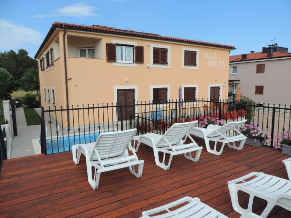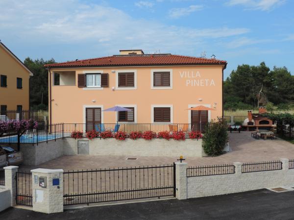 Villa Pineta, beliggende i Fažana, nær nationalparken Brijuni og nær Pineta lejren, kun 650 meter fra stranden, byder på en uforglemmelig ferie i sine 5 moderne udstyrede og komfortable suiter. Havudsigt villaen tilbyder afslapning, fornøjelse i frisk havluft og fordelene ved en nærliggende fyrreskov, rekreation og aktiv ferie. Lejlighederne har aircondition, gratis internetadgang og satellit-tv. For hver lejlighed er der to parkeringspladser. Parkering er også lukket under overvågning af sikkerhedskameraer.