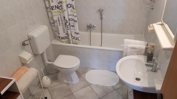 En meget komfortabel og rummelig lejlighed. En ekstra fordel er den vidunderlige have, hvor der er meget plads og du kan slappe af. Børn har hvor man skal spille. Naturligvis var puljen en sensationel forfriskning. Der er kun to lejligheder der, hvilket uden tvivl er en fordel, fordi der ikke er nogen crowding ved poolen, og du kan føle dig meget komfortabel. Placeringen af lejlighederne i stueetagen er også fordelagtig på grund af hurtig adgang til lysthus eller swimmingpool. Valbandon ligger 20 minutters gang fra centrum af Fazana. Det er muligt at nå stranden eller fortovet. Stranden har en meget lang kystlinje, som er sjælden i Kroatien. Sandsynligvis vil alle finde et sted, der passer til sig selv. Jeg anbefaler på grund af placering og pool. Ejere hyggelige, omsorgsfuldt omkring rummet omkring huset og villige til at tale.