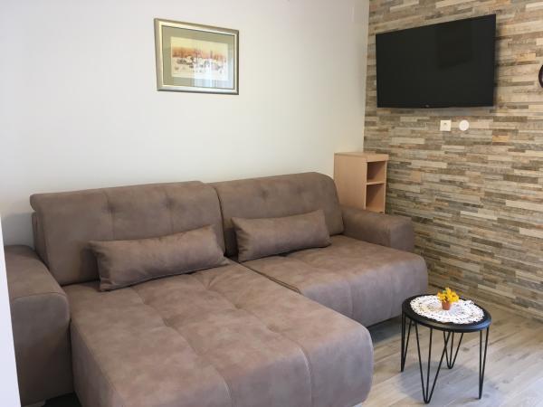 Velkommen til Villa Pinija, et familieferiehus i Fažana, nær Valbandon-stranden. Gæsterne har adskillige faciliteter til deres rådighed, som vil forbedre deres ferie. Nyd solterrassen under dit ophold på Villa Pinija. Du kan bruge saunaen og fitnesscentret i Villa Pineta i Fažana efter aftale med værten. Hvis du ønsker det, kan du leje cykler.
