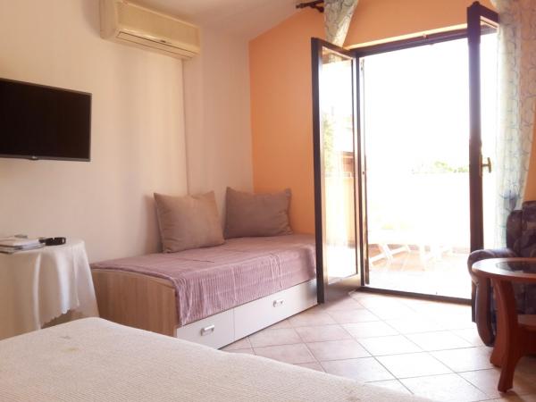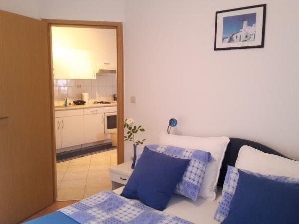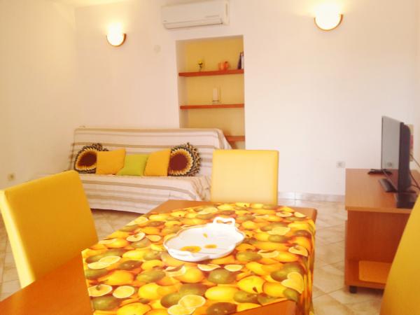 Fuldt udstyrede lejligheder beliggende i Funtana, 300 meter fra den nye stenstrand og 100 meter fra nærmeste restaurant og butik. Alle lejligheder har terrasse, et eller to soveværelser, et til to badeværelser, stue med spisestue, aircondition, gratis WiFi og parkering på stedet. Gården er indrettet med en stor indhegnet have med rosenhave, grillplads og to overdækkede verandaer. Velkommen!