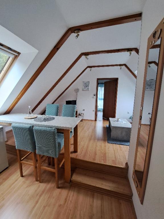 Apartments Erika ligger 800 m fra centrum af Fužine. De er beliggende i et familiehus med separat indgang for gæster. Vi har to lejligheder og de er kategoriseret med *** og **** stjerner og et dobbeltværelse med separat badeværelse kategoriseret med *** stjerner. Vores bolig bærer mærket Kvarner familiekvalitet og under mærkerne Hike friendly, Bike friendly. Vi har opbevaring til otte cykler. Lejlighedens gæster har til deres rådighed vores have, som er smukt indrettet og har en masse grønt. Vi har en havegrill, en legeplads for børn, som består af rutsjebane, vippe, gynge og badmintonbane. Gæsterne kan nyde grillen, skyggen og den friske bjergluft i fred. Lejlighederne har centralvarme, aircondition og Wi-Fi-forbindelse. I nærheden ligger vores adrenalinpark (Vara fun and paintball park), som du kan besøge i sommermånederne. Kom og mærk charmen ved en lille by i Göran og varmen fra hjemmet i vores lejligheder, som mange af vores kære gæster har følt og oplevet, og som har gengældt med mange roser og anbefalinger. Velkommen!
