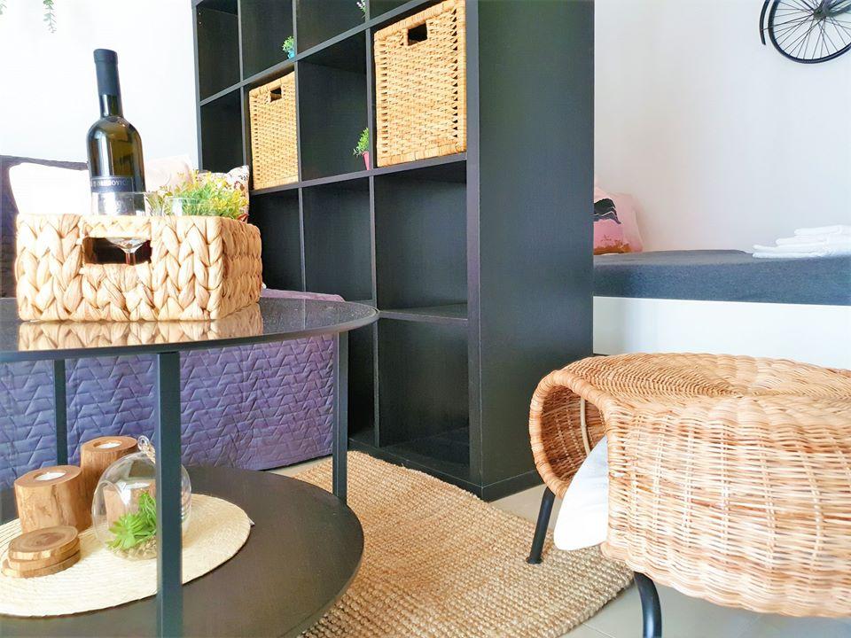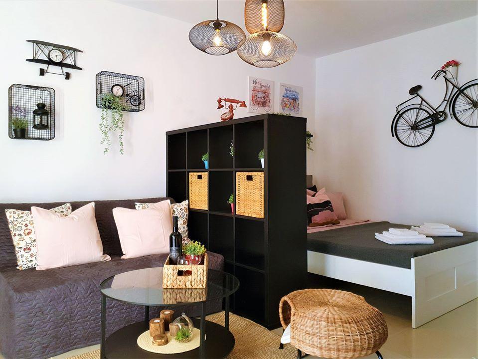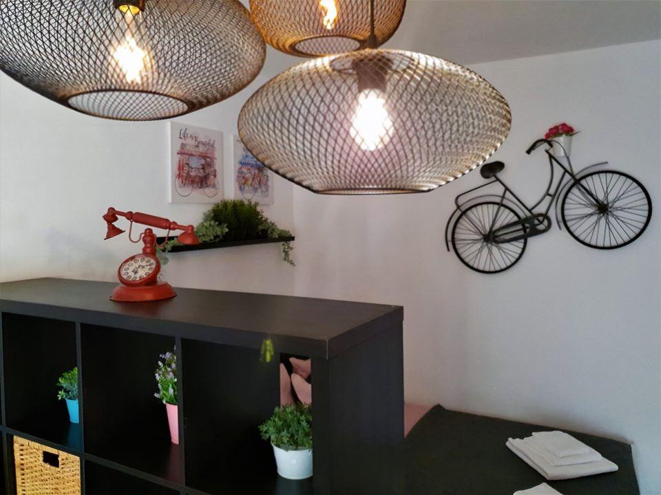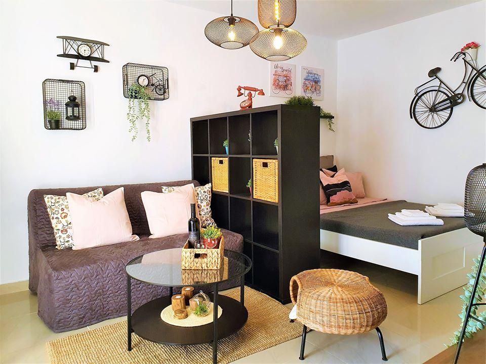 Vi boede i en studiolejlighed, meget pænt dekoreret, vi havde alt, hvad vi havde brug for. Romantisk stemning om aftenen med belysning i gården. Fra gården til havet og svømning uden grænser... Værterne er meget søde. Det var en dejlig og fredelig ferie!!