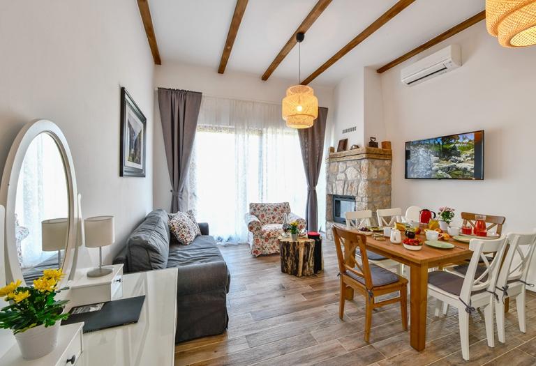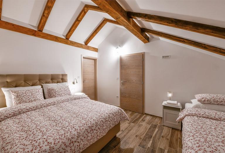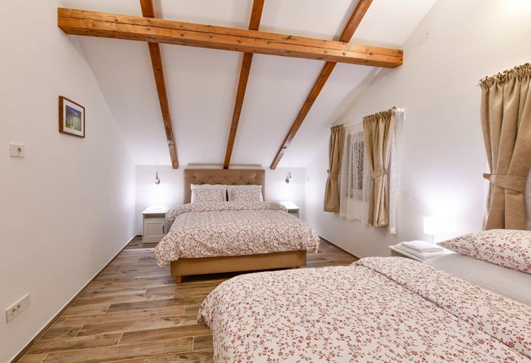 I uberørt natur, nærmest i hjertet af Lika, i tre "gamle" Lika-huse, som har hver sin historie, byder vi på traditionelle indretningselementer med et strejf af historie og oldtid, men også luksus og komfort, som er så nødvendigt i dag for hvile og flugt fra den travle hverdag. Udstyret i selve faciliteterne er noget vi er ekstremt stolte af og indeholder alt det nødvendige for at gøre ferien komplet og uforglemmelig. Her mener vi frem for alt en vinkælder, et værtshus, hvor måltiderne tilberedes for gæster, en indendørs, indendørs, opvarmet swimmingpool, en sauna, centralvarme, en varevogn til overførsler, mulighed for leje af terrængående køretøjer, din egen overdækket parkeringsplads, en børnepark, havemøbler, men også et tv, internet, klimaanlæg, vaskemaskiner og tørretumblere, opvaskemaskiner, grill, varmluftovn, hårtørrere, samt en drikkevandskilde, der daterer tilbage til tiden for det østrig-ungarske monarki