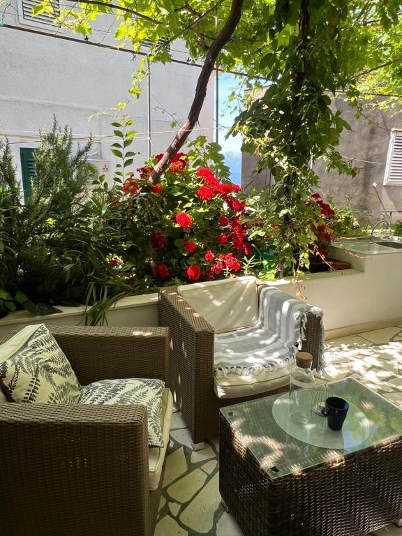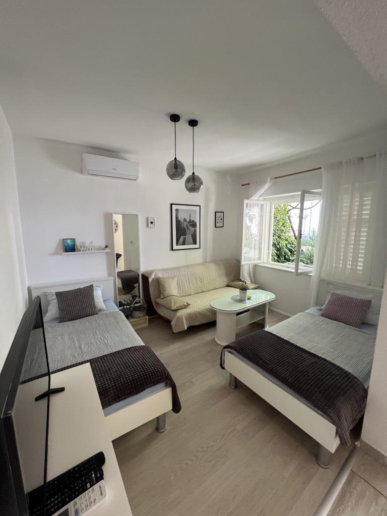 Lejlighed i centrum af Gradac, moderne indrettet med aircondition, fuldt udstyret køkken, meget ren, med en stor, overdækket terrasse. Til havet i lige linje 15 meter, til hovedtorvet i Gradac og videre til promenaden 20 meter. Teo var en stor, hjælpsom vært. Halvvejs gennem vores ophold blev alle håndklæder og sengetøj skiftet. Råd til fremtidige gæster: stol ikke på Google navigation, når du kommer til Gradac - Teo er navigationen. Jeg anbefaler oprigtigt denne lejlighed.