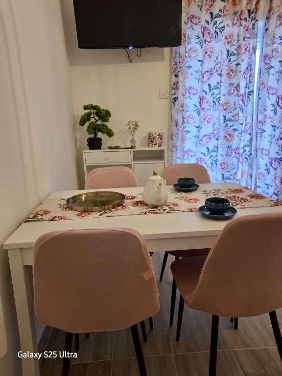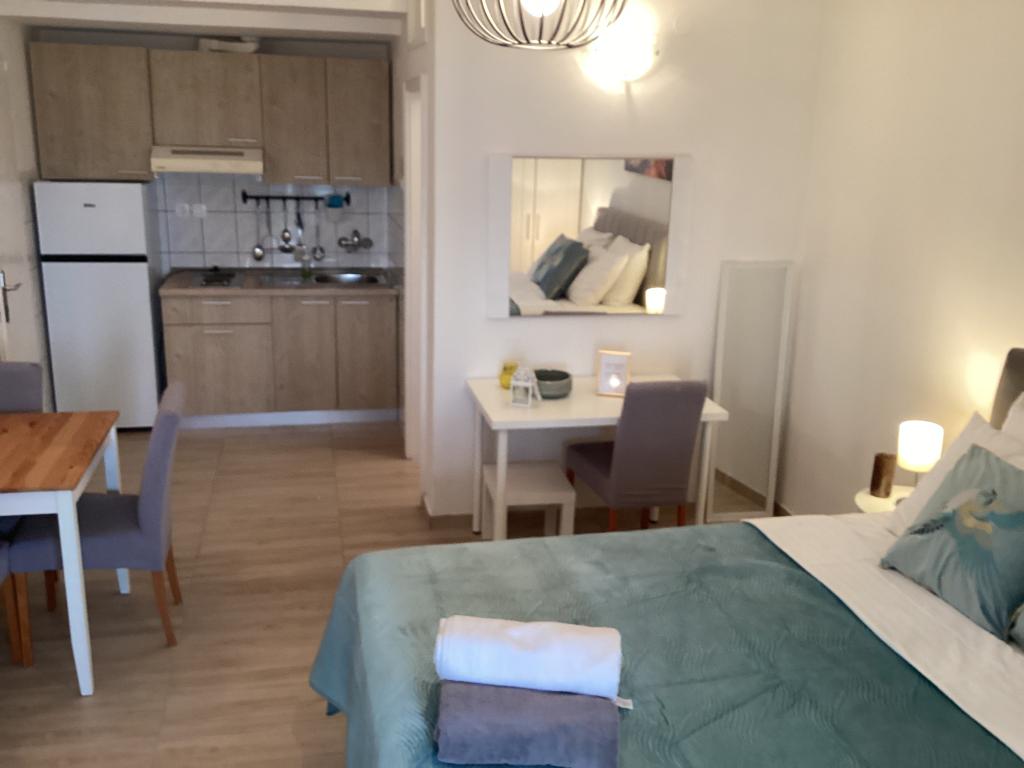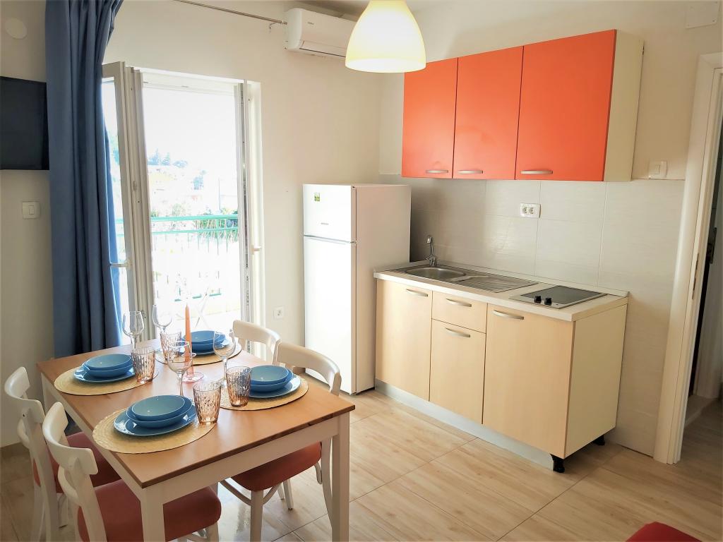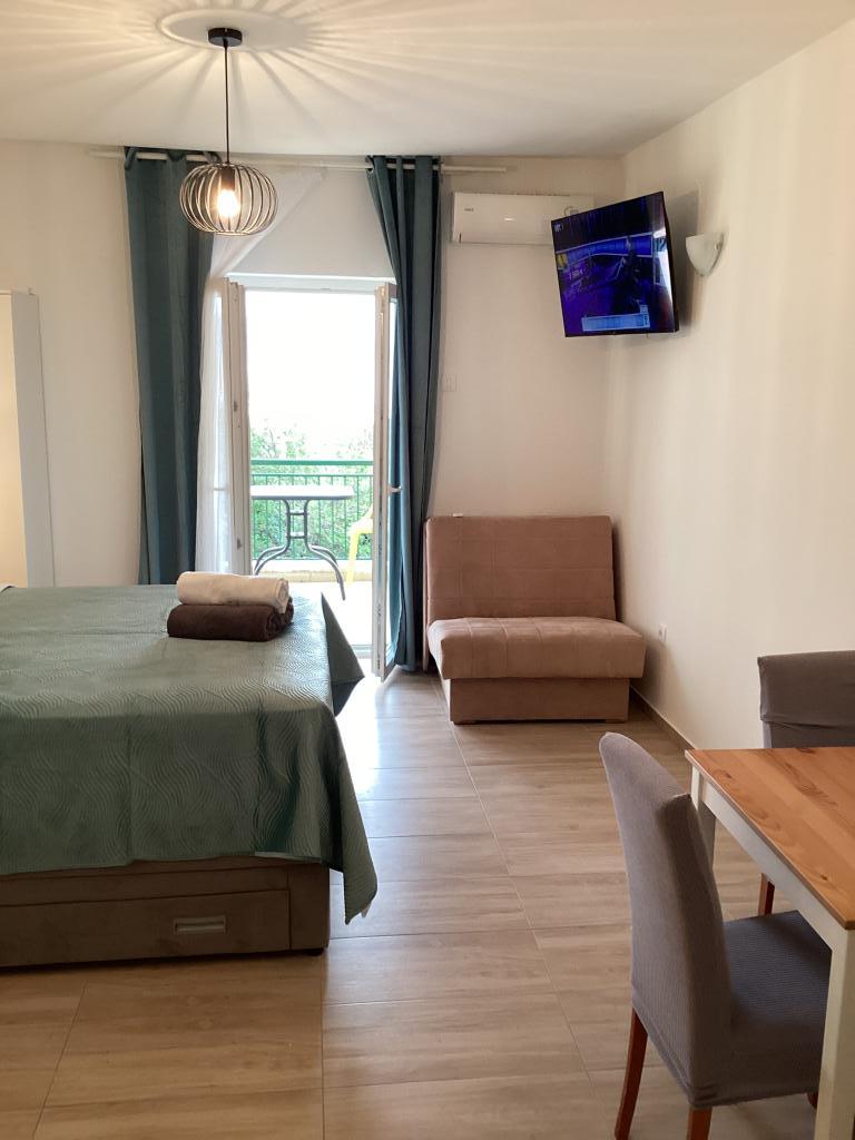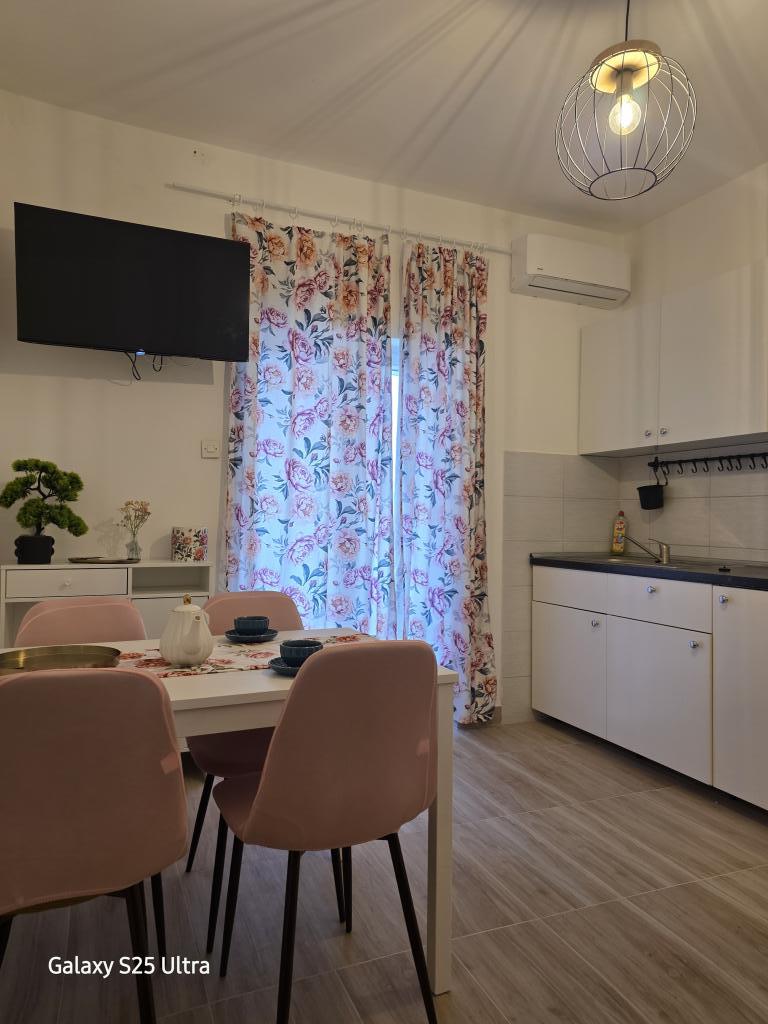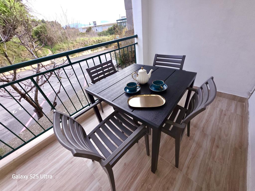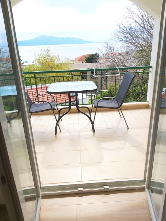 Vi boede i Ariana-lejligheden på anden sal. Det er ret rummeligt og udstyret med alt hvad du behøver, selv en vaskemaskine. Begge værelser har aircondition, hvilket gav os privatliv, fordi vi ikke behøvede at holde værelsesdøren åben. Altanen har en smuk udsigt over havet og bjerget, den er stor nok til at spise middag på den, den vender ud mod den stille side, hvor ingen biler kører forbi. Parkering er sikker i husets gård. Vi kommer gerne igen.