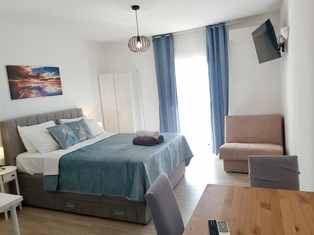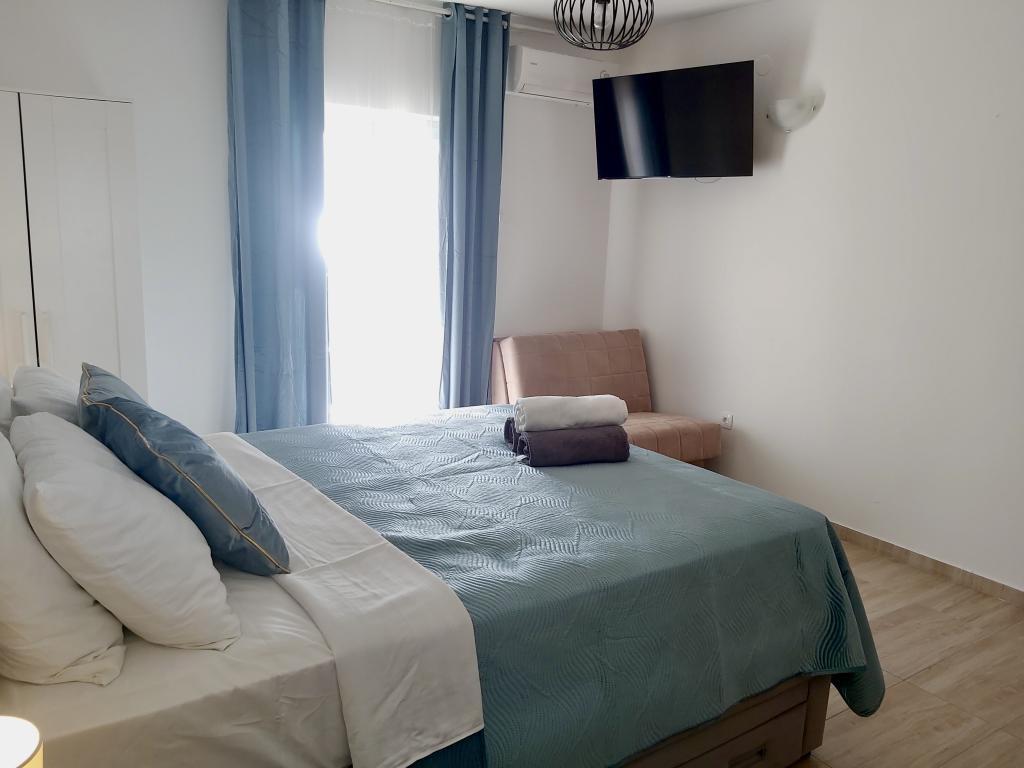Fantastisk sted, rummelig og ren lejlighed, aircondition i alle rum, vaskemaskine på badeværelset, udsigt over det nærliggende Adriaterhav fra balkonerne, vi var der sidste år, i år vil vi også være der med hele familien Hjælpsomme og søde værter Vi anbefaler