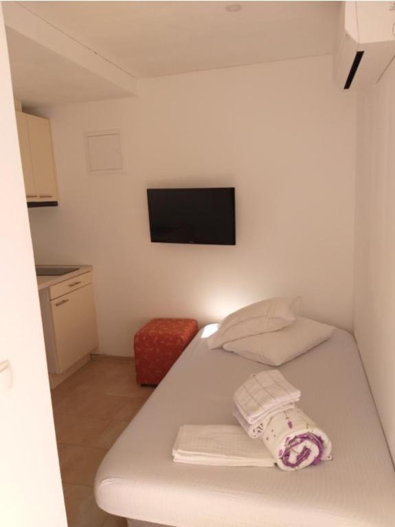Apartments Kolumbo Nyd dit ophold på Apartments Kolumbo, ideelt beliggende kun få minutters gang fra den smukke stenstrand, hovedtorvet, pizzeriaer og caféer. Ejendommen tilbyder tre boligenheder. Alle enheder er identisk udstyrede og inkluderer: Aircondition og gratis Wi-Fi. Satellit-tv. Eget badeværelse. Udstyret køkken med komfur, mikrobølgeovn, elkedel og køleskab. Boligens indretning: Stueetage: To lejligheder med nem adgang. Første sal: Lejlighed med terrasse og havudsigt. Parkering er tilgængelig for alle gæster. Eksklusiv fordel i vores restaurant: Som vores gæster får du 10% rabat på frokost og aftensmad i vores familierestaurant Marina Restaurant. Nyd friske lokale specialiteter til en mere overkommelig pris.