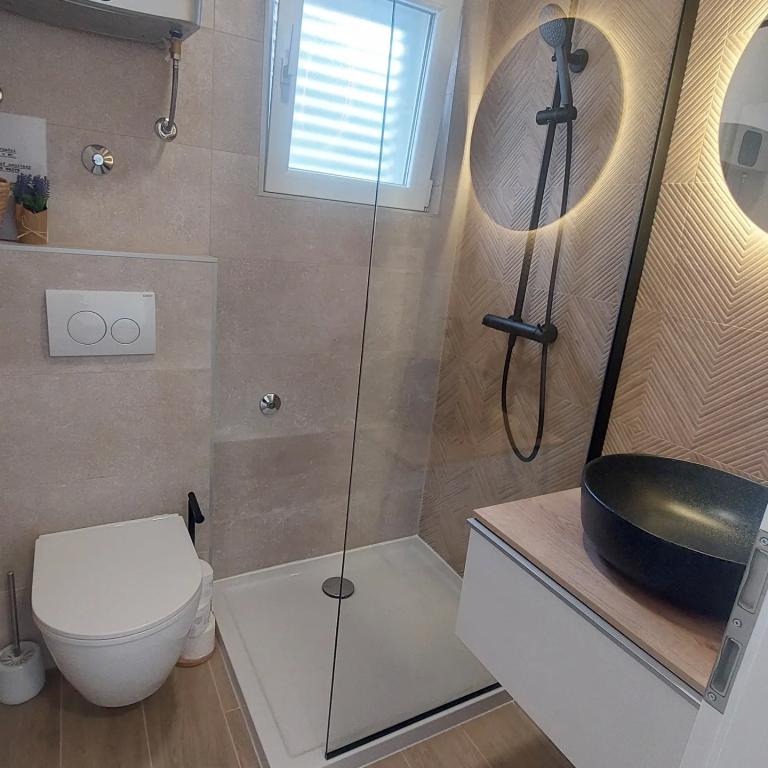 Et familiehus med den smukkeste udsigt over den smukke stenstrand, det klare blå hav og øerne. Betagende naturlige omgivelser. I vores lille dalmatiske by finder alle noget for sig selv, uanset om du leder efter en aktiv ferie eller et sted at slappe af om morgenen, fred mens du drikker din første morgenkaffe, solens stråler bryder igennem fyrretræerne og inviterer dig. til et nyt eventyr. Efter en aktiv dag på stranden kan du slappe af og forny din energi. Tag et glas god vin og nyd magien, fald i søvn efter at have nydt den vidunderlige udsigt over himlen fuld af stjerner på terrassen, der fortæller deres historie...