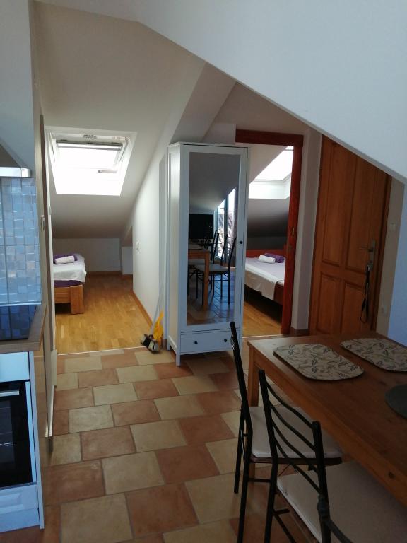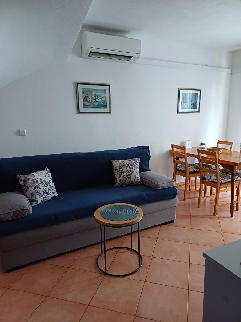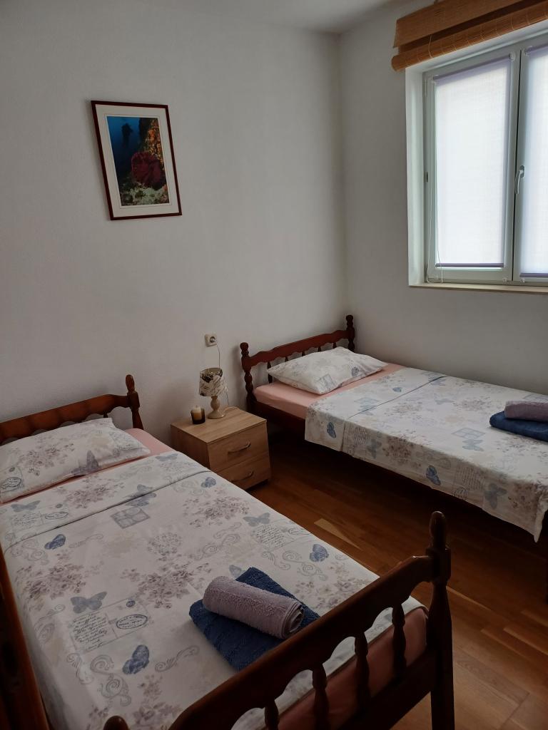 Apartment Lina er en fuldt udstyret lejlighed på et roligt sted nær centrum. Der er 3 minutters gang til stranden, og samme afstand til centrum. Det er beliggende på første sal i et privat hus og indeholder en stue i forbindelse med køkkenet, et soveværelse med en dobbeltseng og et soveværelse med 2 enkeltsenge og et badeværelse. Det har også en balkon med havudsigt. Den er udstyret med alle grundlæggende husholdningsapparater (køleskab, ovn, komfur) og inkluderer aircondition og et tv og en sovesofa i stuen. Prisen inkluderer en parkeringsplads 200 m fra lejligheden, men ved ankomsten, med henblik på aflæsning af din bagage, kan du køre i bil 30 m fra lejligheden. Værten er placeret samme sted og vil ved ankomsten byde gæsterne velkommen og vise dem lejligheden og parkeringspladsen og aflevere nøglerne.