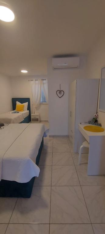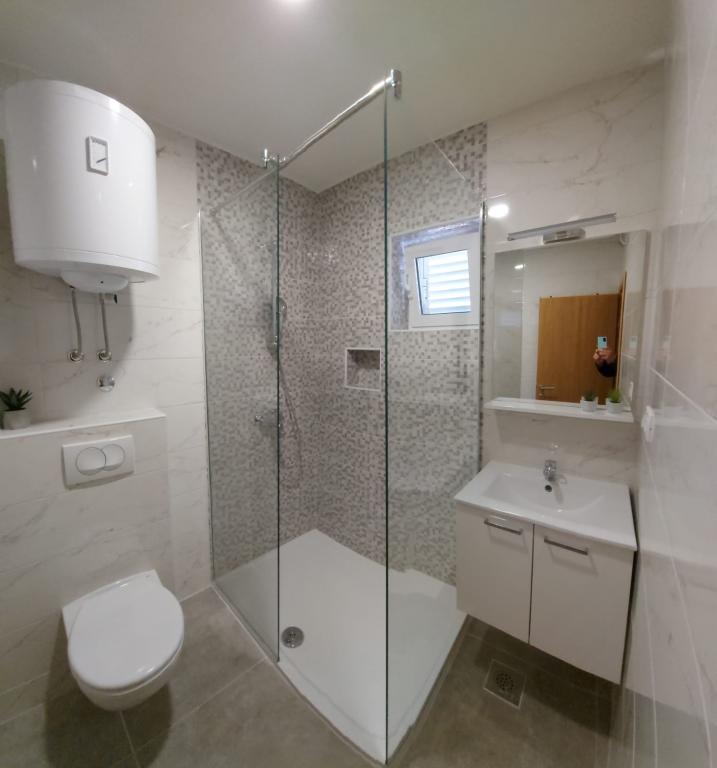Vi boede i 4+2-lejligheden og var begejstrede. Alt er skinnende rent, pænt og nyt. Denne lejlighed er rummelig med et stort og smukt badeværelse og havudsigt. Værterne er virkelig vidunderlige og især venlige. Vi anbefaler denne indkvartering helhjertet og også deres hjemmelavede kirsebærlikør. Smukke strande ligger kun få minutters gang væk på begge sider. Der er også barer, restauranter, bagerier osv. lige rundt om hjørnet... Tak for alt, og på gensyn!