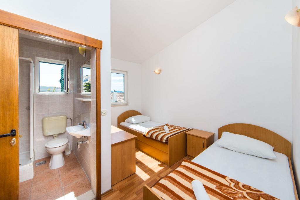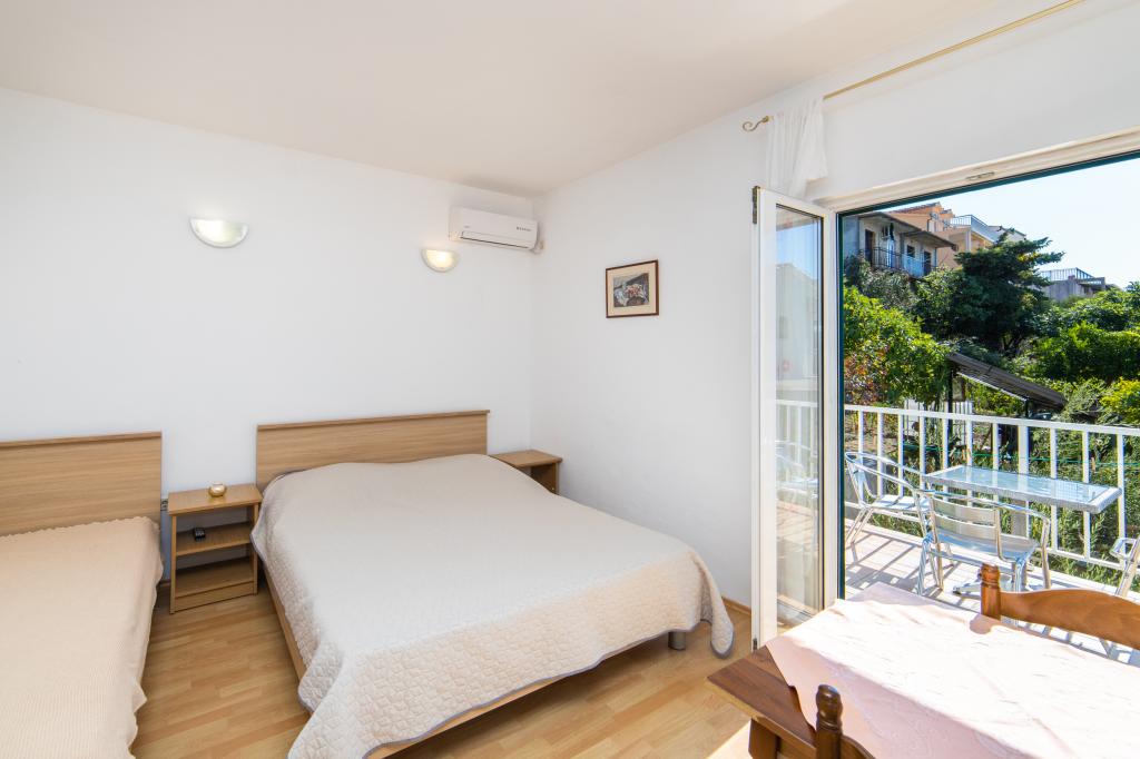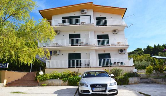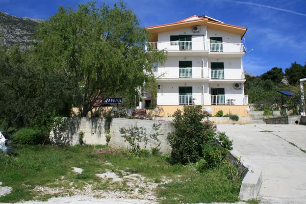 Villa Slavena ligger i en rolig turistdel i Gradac 5 minutters gang til stranden, centrum, restauranter og andre faciliteter, der er nødvendige for en aktiv sommerferie. . Huset består af 7 studiolejligheder, hvoraf 1 er dobbelt, 4 tredobbelt, 2 firedobler og på toppen af huset er der 1 stor lejlighed til 6-10 personer med 3 separate soveværelser, 2 toiletter, køkken og en balkon omkring lejligheden med smuk havudsigt. Denne lejlighed har også en vaskemaskine og en opvaskemaskine. Lejlighederne er fuldt og moderne udstyret. Hver lejlighed har aircondition, Wi-Fi internet, satellit-tv. antenne. Foruden indholdet af lejligheden har gæsterne til rådighed brug af gårdspladsen til middage og socialt udendørs foran huset og brugen af pejse, og foran huset kun privat parkering for gæster.