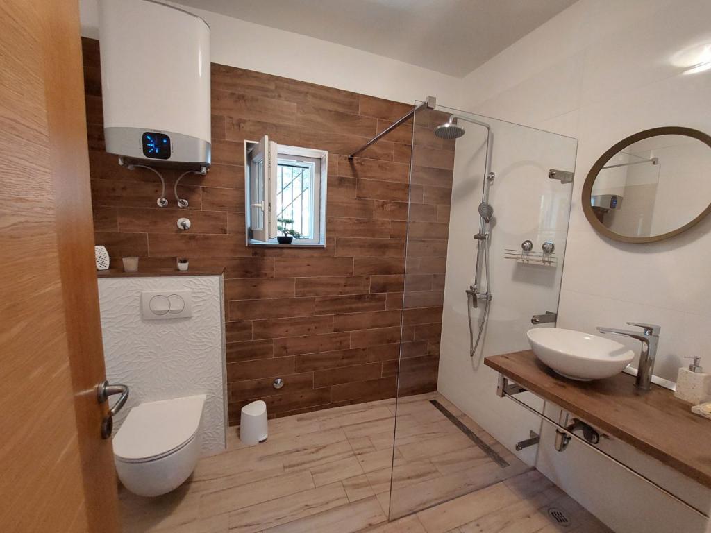 Lejligheden er beliggende i centrum af Dalmatien i den lille by Šparadići, kendt for sit krystalklare hav og fredelige omgivelser Ideel til familieferier. Lejligheden ligger i et privat hus med en rummelig terrasse med udsigt over havet ca. 30m væk. Aircondition og fuldt udstyret med to soveværelser. Smart TV og Netflix Parkering til en bil, en udendørs bruser og en fælles grill er til rådighed for gæsterne. Lejligheden ligger halvvejs mellem Šibenik og Primošten (ca. 10 km), hvor du kan finde en række faciliteter, lige fra attraktive restauranter, kulturelle seværdigheder til berømte natklubber. Nyd gåture, besøg Krka National Naturpark, slap af på stille strande eller tilbring en aktiv ferie på at cykle langs naturstier. Lejligheden er fuldstændig kæledyrsvenlig og medbringer du dit kæledyr, får du yderligere rabat på overnatninger!!! Velkommen