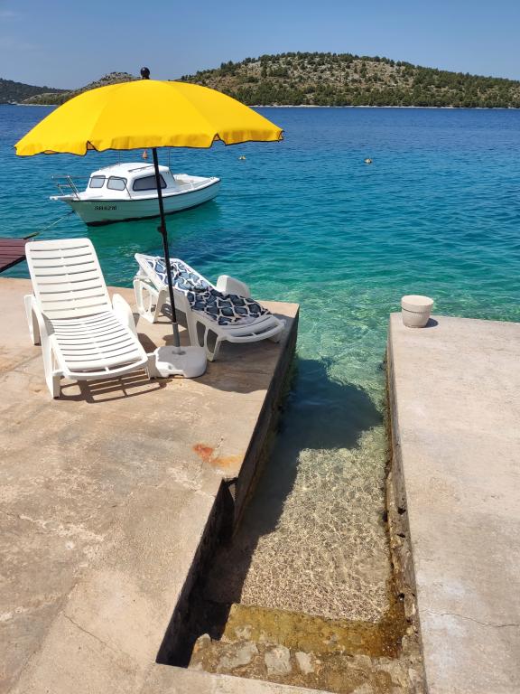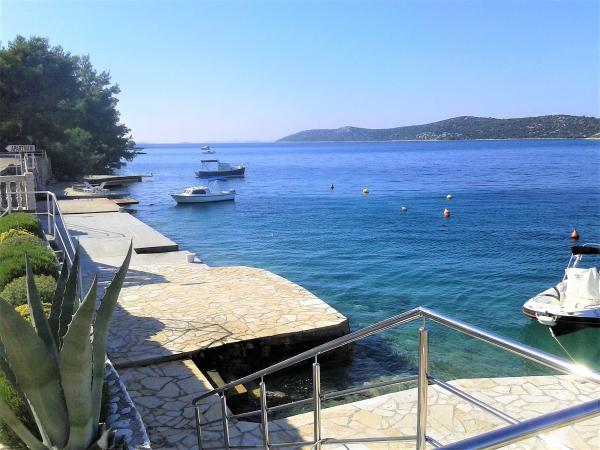 Turistskat er inkluderet i prisen. Dokumentation for reservationsbekræftelse ved reservationVi anbefaler et besøg i Krka Nationalpark, 24 km væk, som besøges af mere end en million besøgende om året, Kornati Nationalpark, hvortil der arrangeres adskillige bådture, Primošten, en af de smukkeste mindre byer på den kroatiske kyst, ligger 9 km væk, den gamle bydel i Šibenik ligger 16 km væk, den historiske by Trogir ligger 40 km væk og vandlandet Dalmatien, som er særligt interessant for børn, ligger 11 km væk. For bådejere ligger de mange øer i Šibenik-øgruppen, et maritimt paradis, blot få sømil fra huset. Bådpladsen er foran huset. Der er mange attraktive cykel- og vandrestier i nærheden, hvoraf nogle går langs den skovklædte bakke over huset med en smuk udsigt over havet. Der er også en promenade langs havet, ca. 3 km lang, fra huset til byen Grebaštica.
