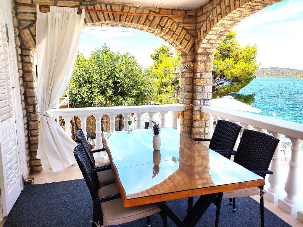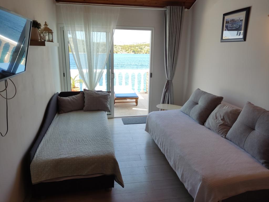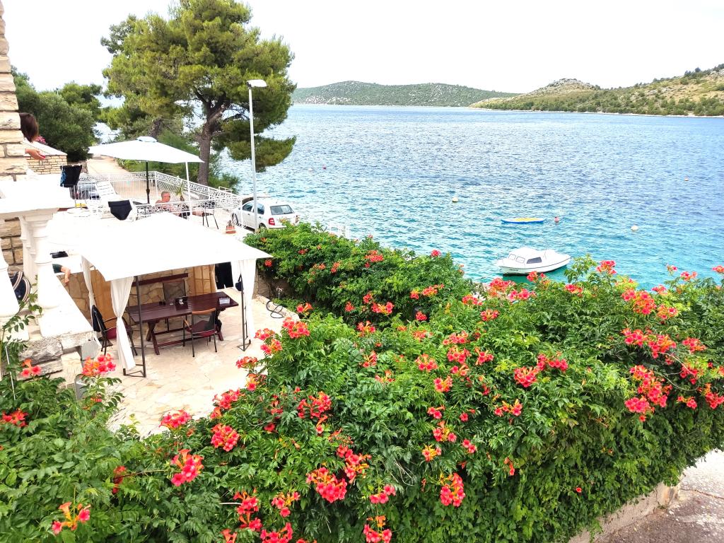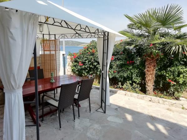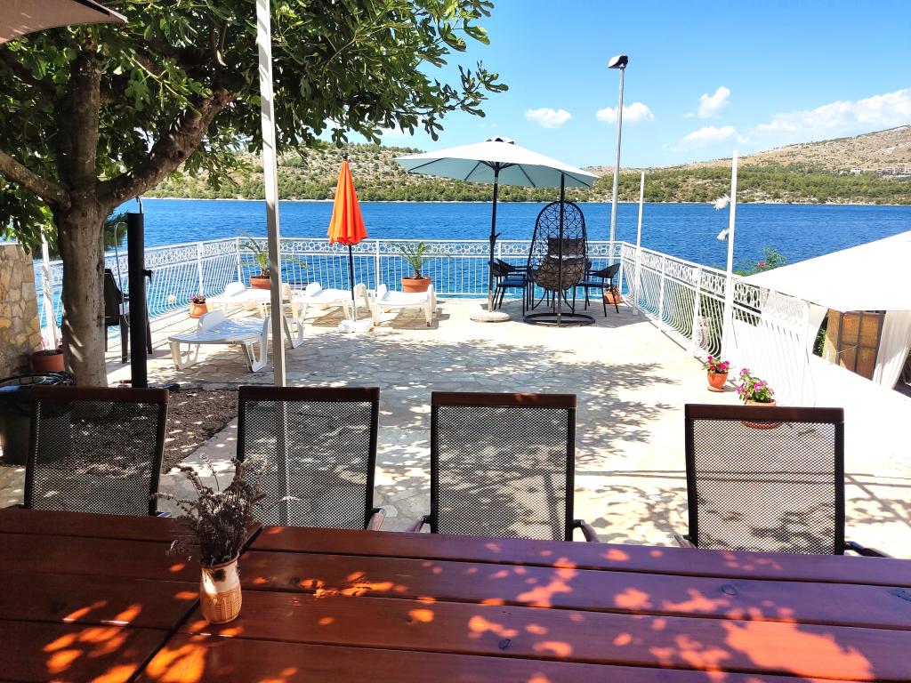 Hele huset med tre lejligheder udlejes, ideelt til tre familier og grupper på op til 12 personer. Huset ligger i en dejlig beliggenhed, 7 m fra stranden i det rolige turiststed Šparadići. To lejligheder har rummelige terrasser med smuk havudsigt, og den nederste lejlighed har en indhegnet have. Der er også en stor terrasse over havet med grill og to haveborde, hvor gæsterne kan opholde sig sammen i skyggen af figen- og vintræer. Ejerne bor ikke i huset. Alle lejligheder har aircondition, gratis parkering, tv, WiFi, gratis liggestole og parasoller på stranden og terrasserne. Mulighed for bådpladser foran huset. Et ideelt sted til din familieferie. Velkommen.