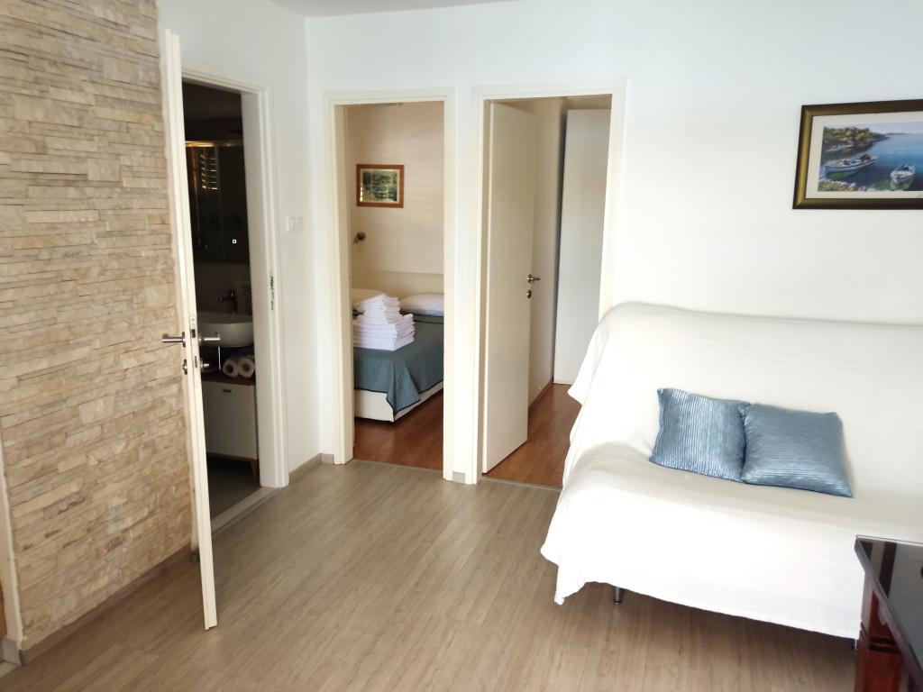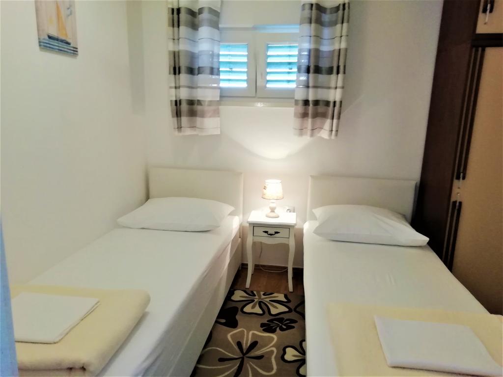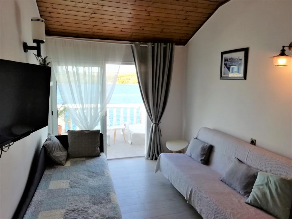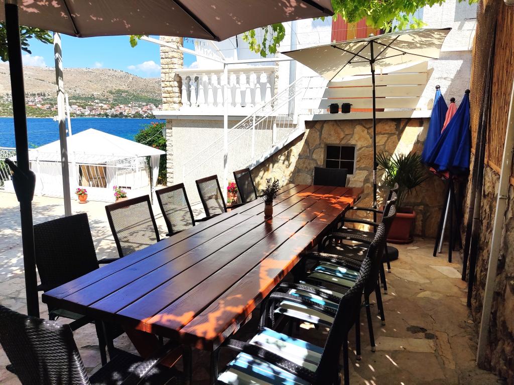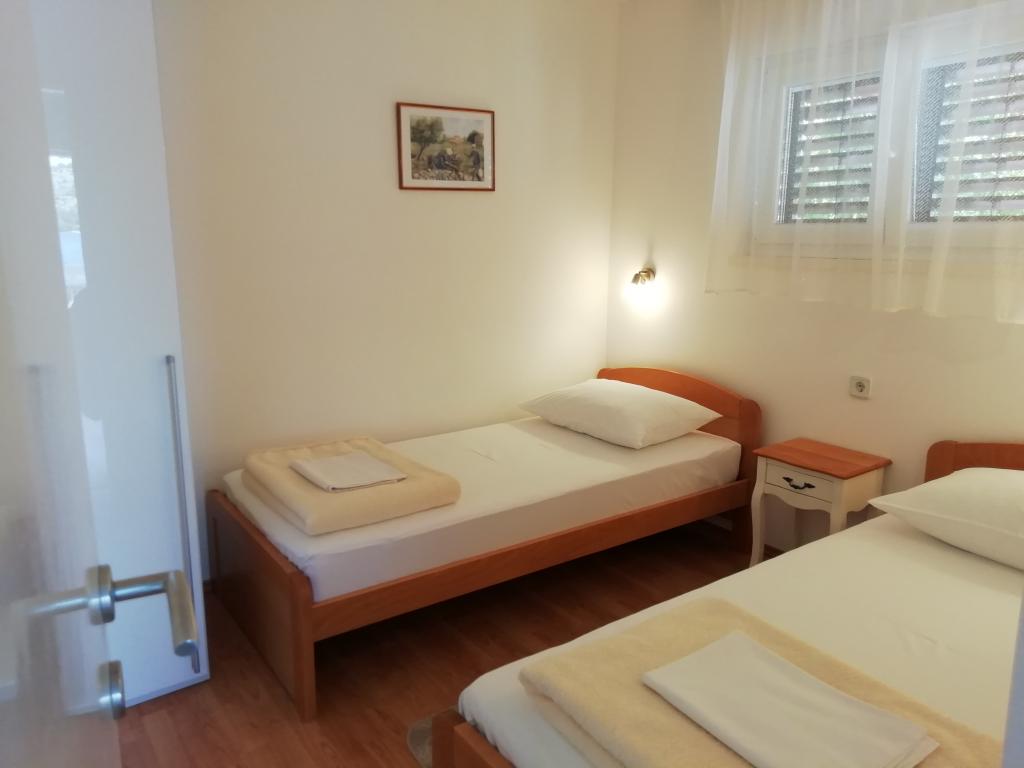 Hele huset med tre lejligheder udlejes, ideelt til tre familier og grupper på op til 12 personer. Huset ligger i en dejlig beliggenhed, 7 m fra stranden i det rolige turiststed Šparadići. To lejligheder har rummelige terrasser med smuk havudsigt, og den nederste lejlighed har en indhegnet have. Der er også en stor terrasse over havet med grill og to haveborde, hvor gæsterne kan opholde sig sammen i skyggen af figen- og vintræer. Ejerne bor ikke i huset. Alle lejligheder har aircondition, gratis parkering, tv, WiFi, gratis liggestole og parasoller på stranden og terrasserne. Mulighed for bådpladser foran huset. Et ideelt sted til din familieferie. Velkommen.