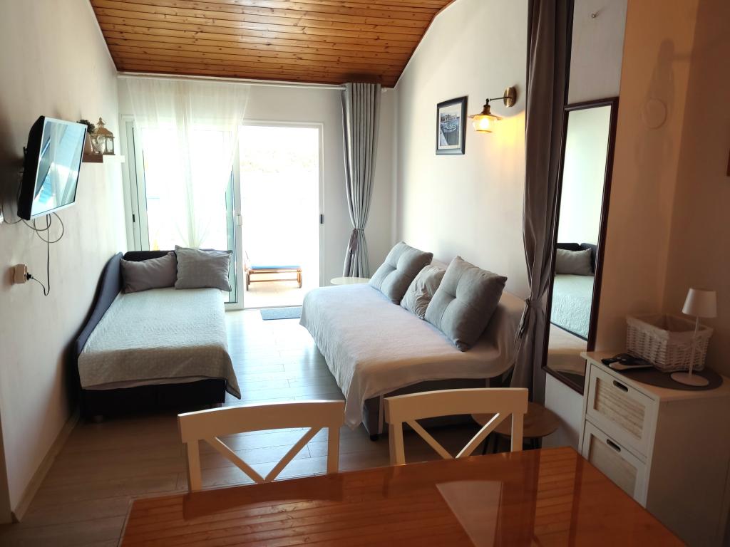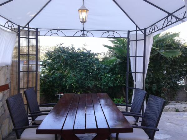 Huset ligger i super beliggenhed - flere meter fra havet. Vi var træfamilier - hele huset var vores. Vi havde vores egen strand, liggestole, parasoller, en stor gård og med udendørs køkken - alt var inkluderet i disse lejligheders pris. Alt var rent, nok plads. Ejeren var utrolig og meget hjælpsom. Han mødte os med velkomstkolde drinks, anbefalede steder at spise middag. Før vores tur sendte han billeder med vand, strand til børn osv., hvad vi spurgte om. På dette sted er der ingen butikker, men hver dag er der lokale folk, som hver morgen medbragte brød, is og grøntsager.