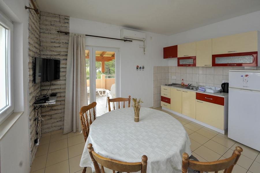 Apartments Mango ligger i Grebaštica, en lille by 14 km fra Šibenik. De ligger i rolige omgivelser, cirka 250 meter fra stranden, og cirka 50 meter fra nærmeste butik. Vi tilbyder tre fuldt udstyrede og moderne lejligheder: Lejlighed 1 (4+2) - anden sal, 60 m2 og terrasse (40 m2), Lejlighed 2 (2+2) - første sal, 40 m2 og terrasse (18 m2) og Lejlighed 3 (2+2) - første sal, 40 m2 og terrasse (24 m2). Lejlighederne har køkken med alle nødvendige hårde hvidevarer, badeværelse og terrasse. Derudover er hver af dem udstyret med aircondition, LCD-tv og trådløs internetadgang. En parkeringsplads er til rådighed, og et udendørs grillhus og en udendørs bruser står til din rådighed. Med forudgående varsel er kæledyr tilladt. For alle spørgsmål står vi gerne til din rådighed. Velkomst!