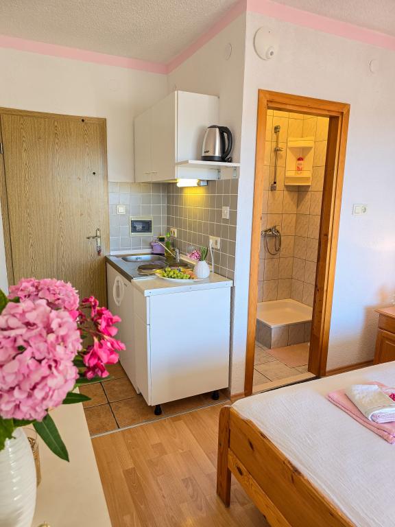 Stor smjetsaj, fantastisk udsigt fra balkonen, meget ryddelige lejligheder; meget venlige værter, diskret, og meget tilgængelige for alle oplysninger. Fredelig, parkering lige foran huset, købmand i nærheden, 15 min gang til centrum. Plaza i skak Pokonji ned den smukke, rent hav, med flere restauranter, tæt på stien til stranden stejle (god træning), men har en vej rundt at nå i bil. Yderst tilfreds.