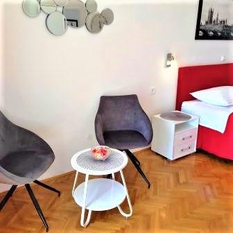 Læs mere IndkvarteringsenhederPrisen inkluderer turistskat, brug af aircondition og wifi. Parkering betales 7 Eur per dag per bil. Sengetøj skiftes normalt en gang om ugen og håndklæder hver 3. dag. Check-in: fra 14:00 Check-out: indtil 10:00 RESERVATIONSBETINGELSER: For at bekræfte reservationen skal der betales et forskud på 20% af det samlede beløb ved bankoverførsel. Resten af beløbet betales kontant på ankomstdagen (vi tager ikke imod kreditkort). Et ophold kortere end 4 dage forhøjes med 20 % i perioden fra 01.07. indtil 31.08.
