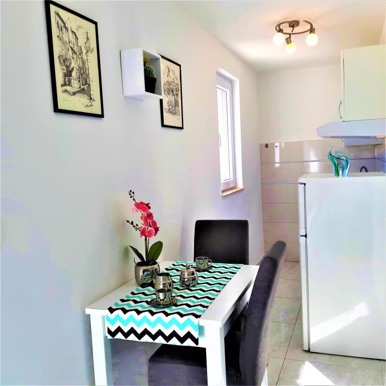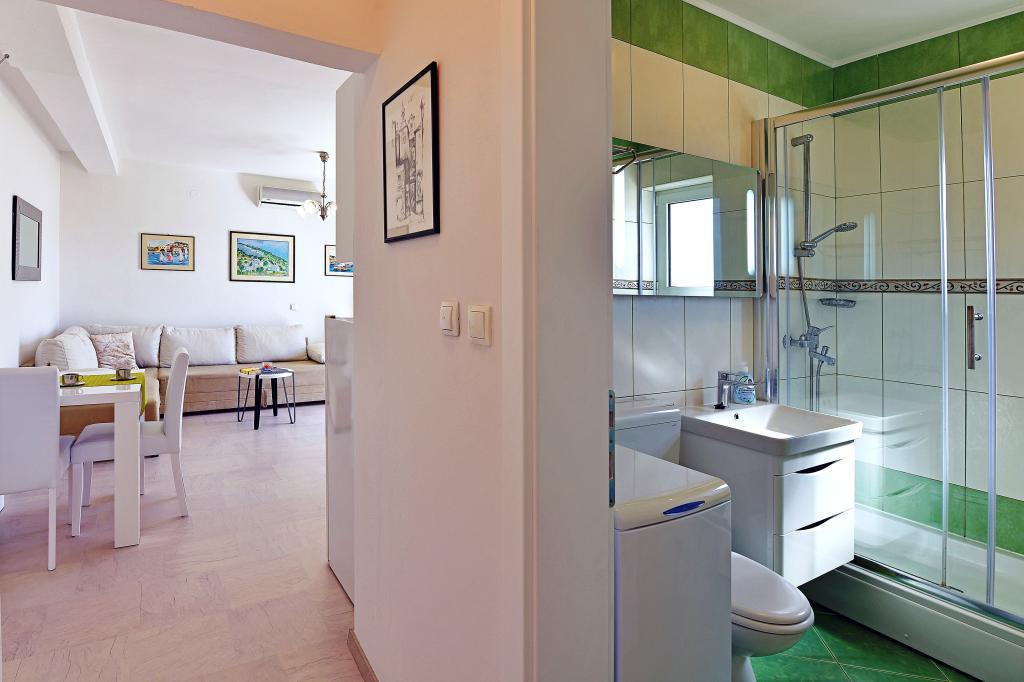 Det var vores anden plads i Kroatien denne sommer, og efter nogle problemer (ikke meget principielle, men irriterende) i forrige sted vi følte fik i paradis. Først på grund af sengen, vi elskede det! Lejligheden er hyggelig og veludstyret. Værter er meget venlige og klar til at hjælpe. Udsigten fra balkonen - ikke perfekt (væg af den næste villa), men nok behageligt at observere havet, øer og yachts. Temmelig tæt på stranden, og tæt på et lille supermarked. Men for at få flere produkter, du bør gå til centrum (Konzum, grønne marked, bagerier), kan det tage nær 20 min én måde. Vi kan sige, at vi havde set alt i denne villa. Men, akustik i lejligheden var ikke meget god. Enhver lukning døre gør bemærkelsesværdig støj, talende mennesker i andre lejligheder er hørbar. Tak, vores nuværende naboer ikke var meget støjende. Alligevel vi tak værter, fik vi en stor fornøjelse og anbefale denne villa.
