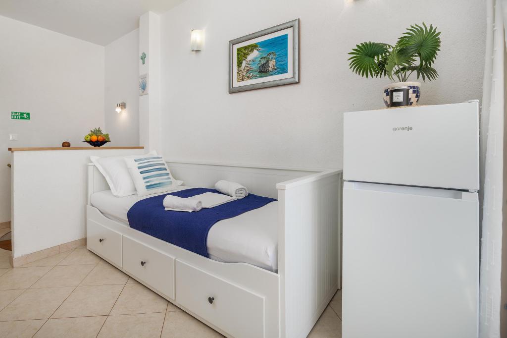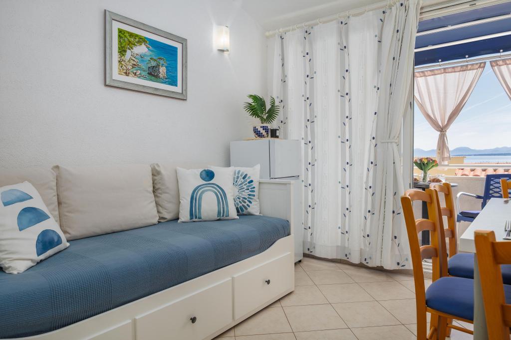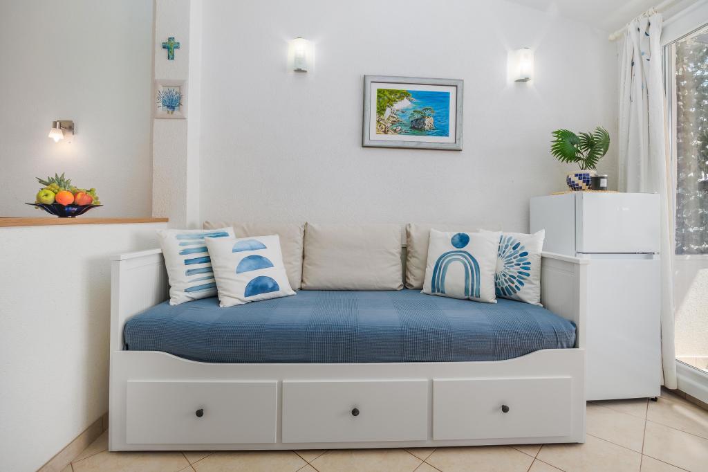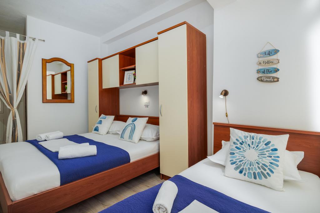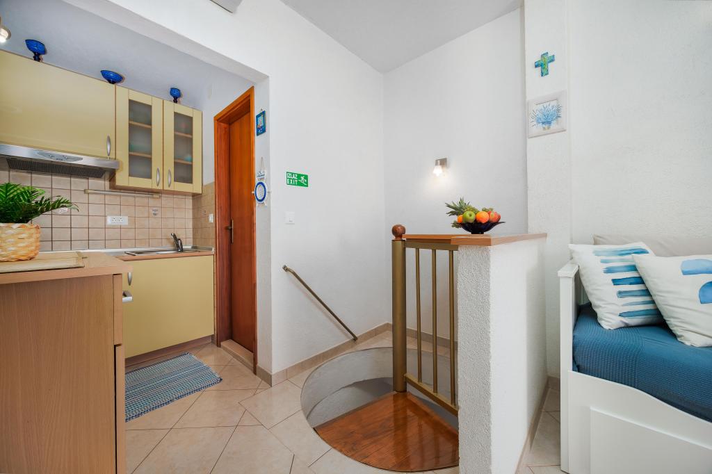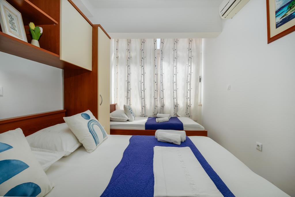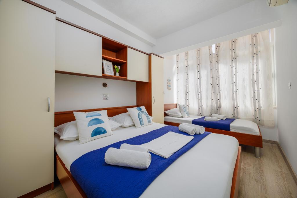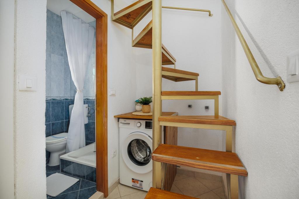 Lejligheden Blue Lagoon har en fantastisk beliggenhed, kun 30 meter fra havet og hovedstranden i centrum af Igrana. Alt hvad du behøver for en perfekt ferie - restauranter, caféer og butikker - ligger kun få skridt væk, uden behov for en bil. Denne moderne toetagers lejlighed tilbyder komfortabel indkvartering til 3+1 personer. Balkonen med udsigt skaber en særlig atmosfære, ideel til morgenkaffe eller aftenafslapning ved havet. Lejligheden er fuldt udstyret til et ubekymret ophold (WiFi, aircondition, køkken, komfortabel stue), og takket være planløsningen i to etager giver den ekstra privatliv og komfort. Beliggenheden i centrum af byen giver dig mulighed for at nyde en fredelig ferie ved havet, med alle faciliteter inden for rækkevidde. 30 m fra havet balkon med udsigt bymidte Wi-Fi og aircondition tæt på restauranter og butikker "Vi anbefaler gerne de bedste strande og restauranter i området "