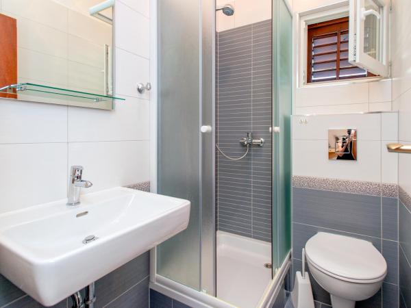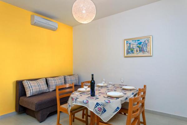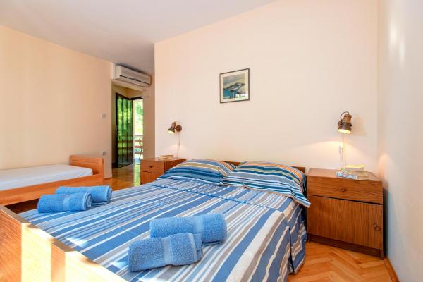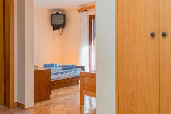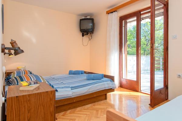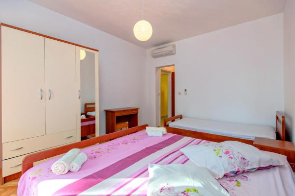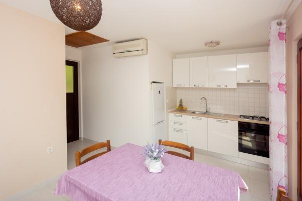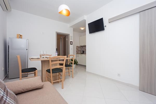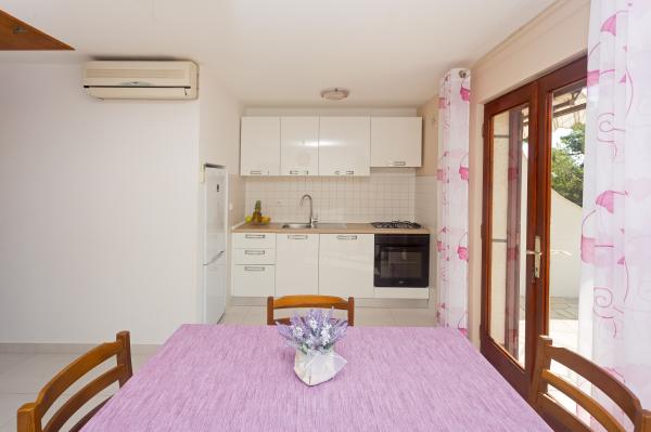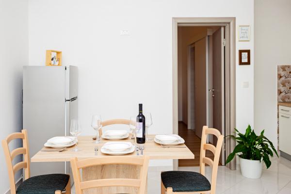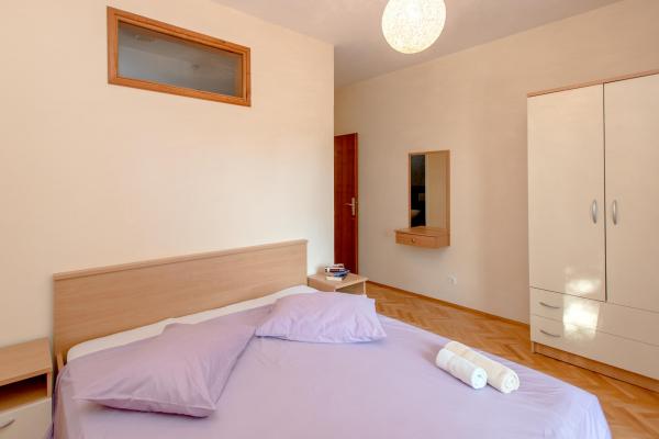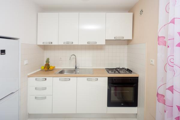 Ved at bo i 7 nætter i denne lejlighed, der ikke ligner lejligheden fra billederne, oplevede jeg den største ulejlighed i mit liv. Da han vendte tilbage ved grænsen, spurgte politimanden mig, hvor jeg boede, og hvorfor jeg ikke var registreret???!!!! I forbløffelse og chok forsøgte jeg at forklare ham, hvor jeg boede, og at der står, at turistskatten er inkluderet i den urealistisk høje pris for den bolig, vi skulle betale! Han fortalte mig, at jeg ikke var registreret, og at jeg skulle betale en bøde på 500 HRK!!!! Nu, hvad angår selve boligen, er det eneste positive (det siger vist sig selv), at lejligheden er ren. Møblerne i lejligheden er fra forrige århundrede! Skabene er sømmet??!!! og de kunne ikke bruges!!! Airconditionanlægget virker halvt. Så snart vi ankom, påpegede vi over for værterne, at satellitkanalerne ikke virkede, og ingen fortjente at løse problemet i alle 7 dage!! Terrassen er rummelig, men du er adskilt fra lejligheden af en lav væg, der ikke går hele vejen, så du, som gæsterne ved siden af os, er fuldstændig frataget intimiteten. En særlig historie er den meget ubehagelige, lille og ældgamle seng, der knirker så meget hver gang den bliver flyttet, at den vækkede min kone og mig i alle disse 7 nætter. Alt i alt føler vi os snydt og ydmyget!!!