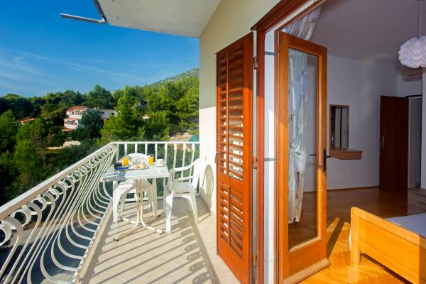 Balic Apartments ligger på den sydlige side af øen, i den lille landsby Ivan Dolac. Takket være det største antal solrige dage i Kroatien og de stejle skråninger af vinmarker sydlige side af øen i Ivan Dolac området stammer fra druer, der gør de bedste kvalitetsvine. Ivan Dolac er stolt af sit miljø, fuld af aromatiske urter og andre Middelhavet flora. Fra det sted, en smuk udsigt over den lille ø Scedro og Korcula. Natur og miljø i Ivan Dolac er det ideelle sted for en afslappende ferie, især for familier med børn, ældre, men også for gæster trætte fra den daglige byens larm. Balic Lejlighederne er designet som separate lejligheder, med egen indgang. Hver lejlighed har et eller to soveværelser, stue, fuldt udstyret køkken og spiseplads, badeværelse og toilet, aircondition, parkeringsplads og en stor terrasse med udsigt over havet. Som registreret slægtsgård, der producerer ekstra jomfru olivenolie, vin, cognac og andre indenlandske varer.