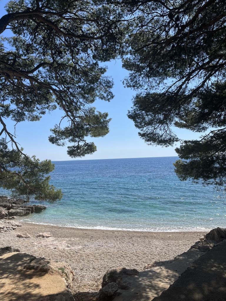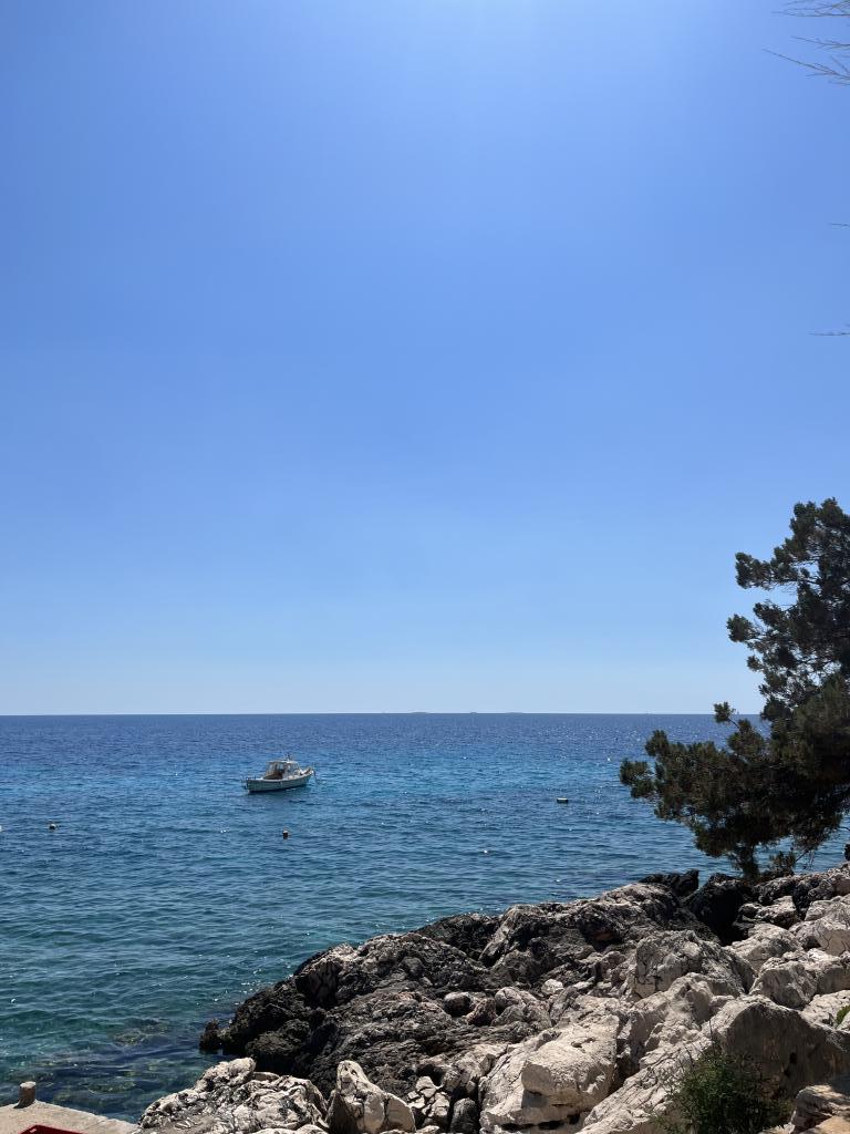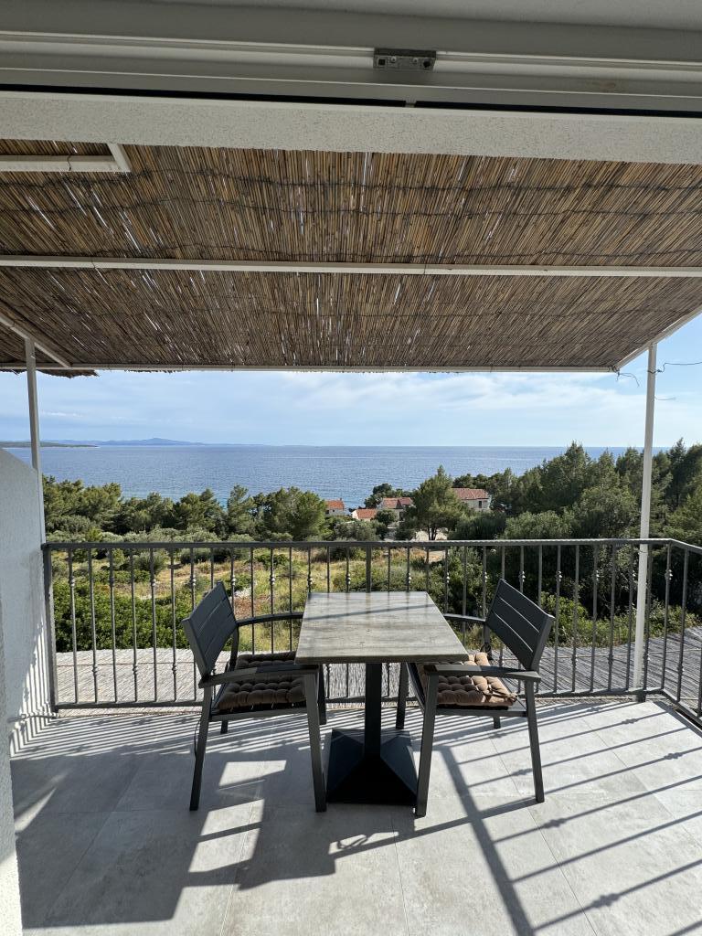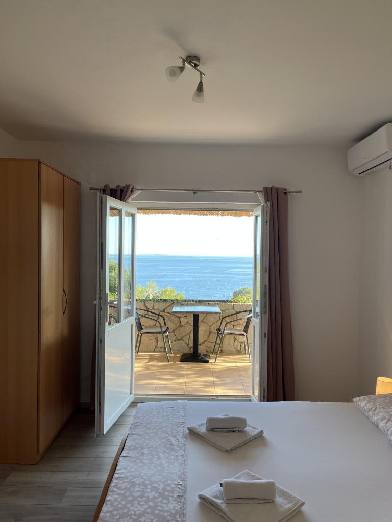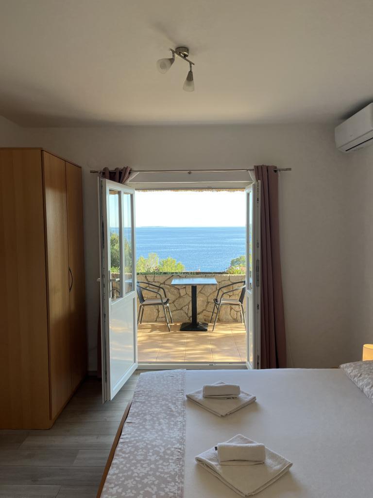12 dages fest.. smuk udsigt fra balkonen (men også fra sengen) over havet og øerne Šćedro, Korčula, Sušac.. tæt på strande, småsten, stenet + skygge af fyrreskov, krystalklart hav, lejlighed fuldt udstyret, nyt klimaanlæg, stort køleskab, rent, ryddeligt og meget venlige værter, fru Nataša og hr. Toni, tak for den lækre middag, alt det bedste til dig og pigerne... og "vores" Loki
