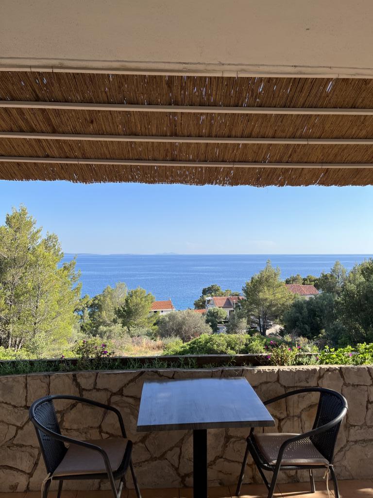Indkvarteringen er skinnende ren, komfortabel og fuldt udstyret med en smuk udsigt og en rummelig terrasse. Den første strand ligger kun ca. 100 m fra lejligheden. Nataša og Toni er de venligste værter, man kan forestille sig, altid klar til at hjælpe og få dig til at føle dig hjemme. Hvad angår Ivan Dolac, er det et smukt lille sted, perfekt for dem, der søger fred og afslapning. Selvom det er stille, har stedet alt, hvad du behøver for et behageligt ophold (butik, strandbar, café og restaurant), og det er også et godt udgangspunkt for udflugter rundt på øen. Vi besøgte næsten alle stederne på Hvar, men Ivan Dolac er præcis, hvad der opfylder alle kravene: udsigt over det åbne hav, krystalklart hav og smukt anlagte strande.