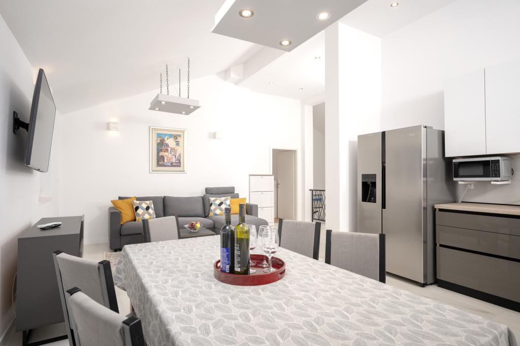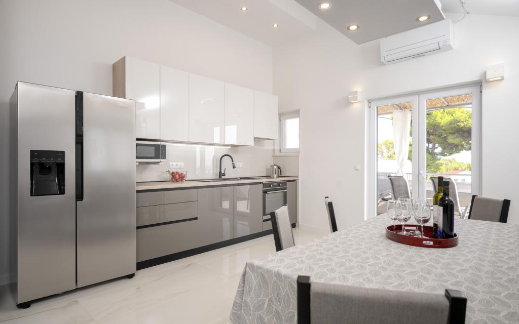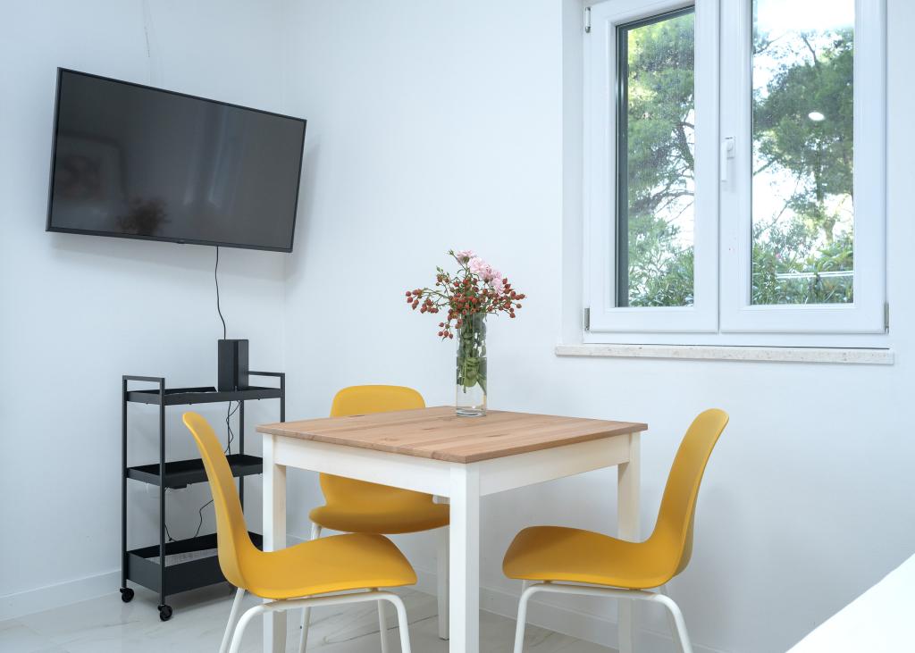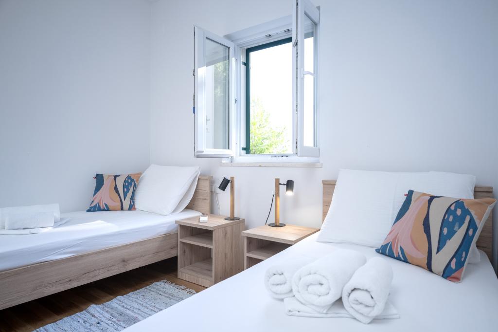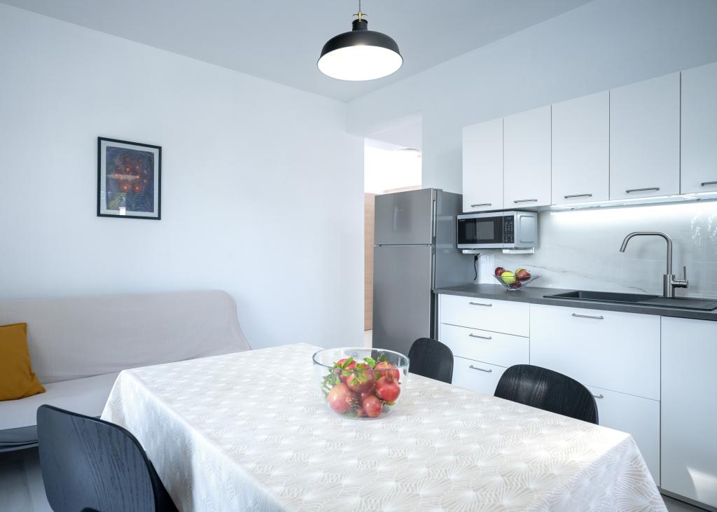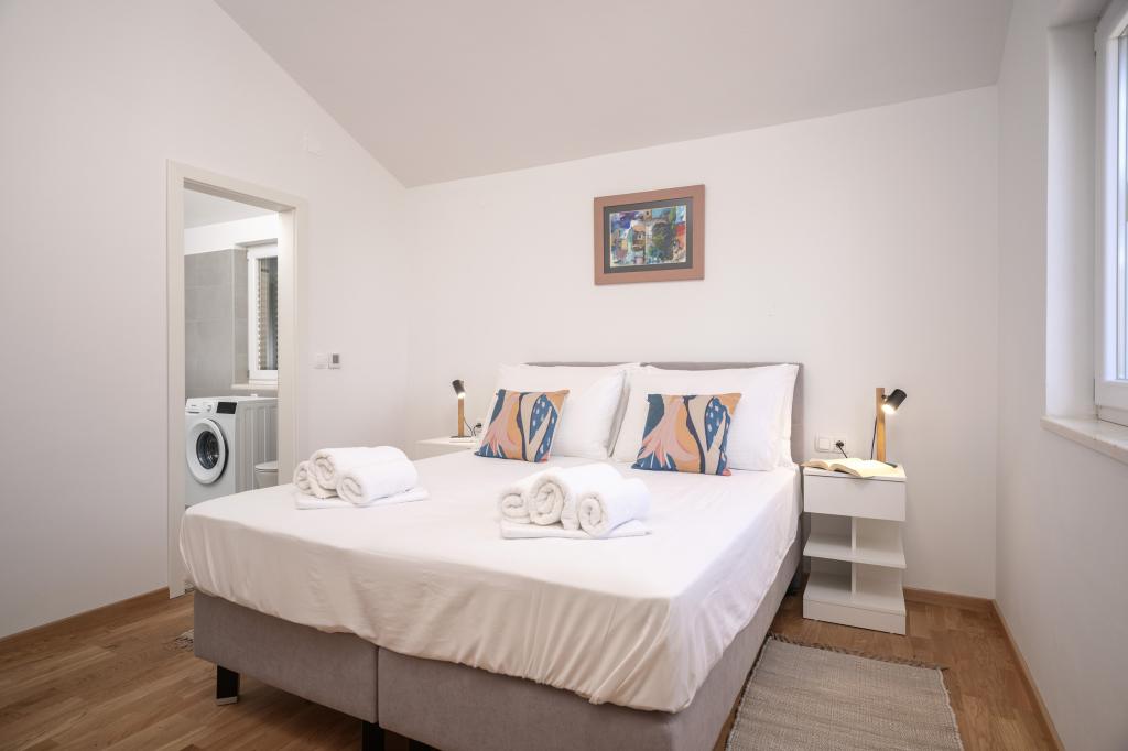 Efter mere end 30 år besøgte jeg den kroatiske kyst igen med min kone og et andet par. Vi var i Ivan Dolac, en hyggelig lille by, ideel til en rolig og afslappet ferie. Om aftenen tog vi til Jelsa, den gamle bydel og byen Hvar. Vi kunne især godt lide den gamle bydel og byen Hvar, især deres arkitektur og bevarelsen af gamle bygninger. Jeg vil gerne fremhæve vores naboers gæstfrihed og venlighed. Og nu noget om vores indkvartering, hvilket er grunden til, at jeg skriver denne kommentar. Vi blev indkvarteret i lejligheden "Matija" på 1. sal, til 4 personer på 50 kvadratmeter. Med ét ord er lejligheden perfekt. Jeg ved ikke, hvor jeg skal starte: Lejligheden har 3 Mitsubishi klimaanlæg (et i hvert soveværelse og et i stuen), komfortable senge, en stor terrasse med havemøbler, et stort badeværelse (velsmagende og vellavet), og hvad kan jeg sige om køkkenet (stort køleskab med fryser, komfur med ovn og induktionskogeplade, mikrobølgeovn, kaffemaskine, elkedel, flere typer glas, krus, tallerkener, pander, gryder, krydderier, kaffe, te, aluminiumsfolie...), perfektion. I gangen har du endda en vaskemaskine, vaskepulver og skyllemiddel, utroligt. Lejlighederne blev åbnet i 2023 og er helt nye. Jeg vil også gerne påpege, at lejlighederne er indrettet med stil og smag, og der er lagt stor vægt på kvaliteten af de indbyggede komponenter såvel som møblerne. Endelig vil jeg gerne fremhæve og rose vores vært Stjepko (en gammel søulv), som var meget behagelig, diskret og gæstfri. Vi modtog hjemmelavet hvidvin fra Stjepko samt hjemmelavede druer fra hans vingård. Tak Stjepko for alt. Jeg kan varmt anbefale denne lejlighed.