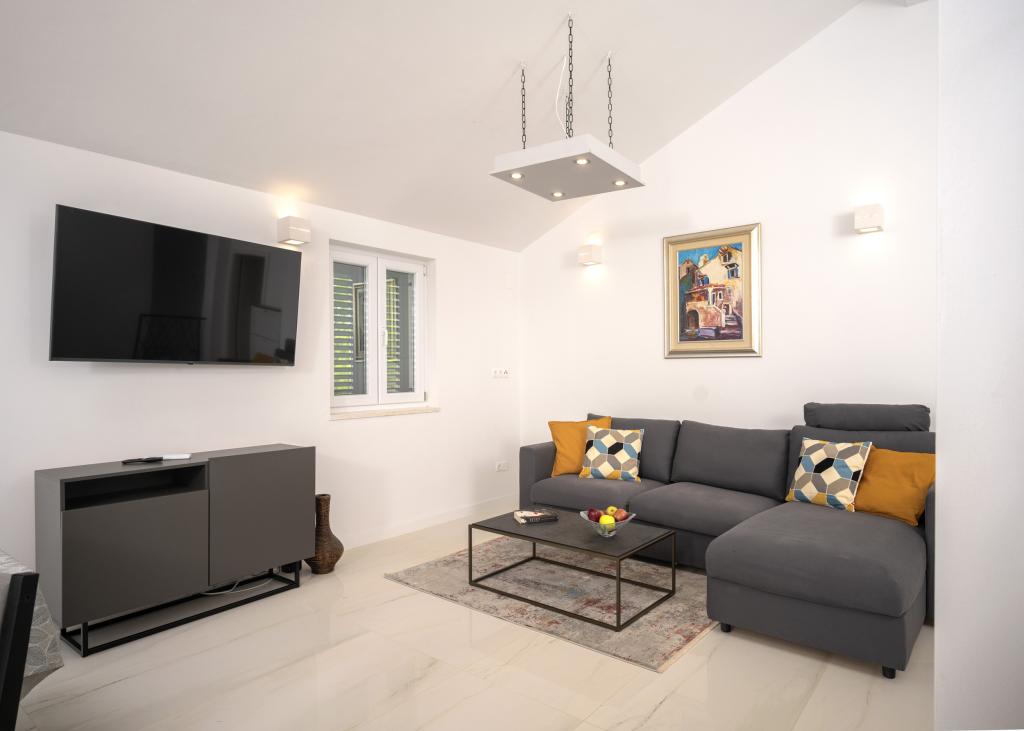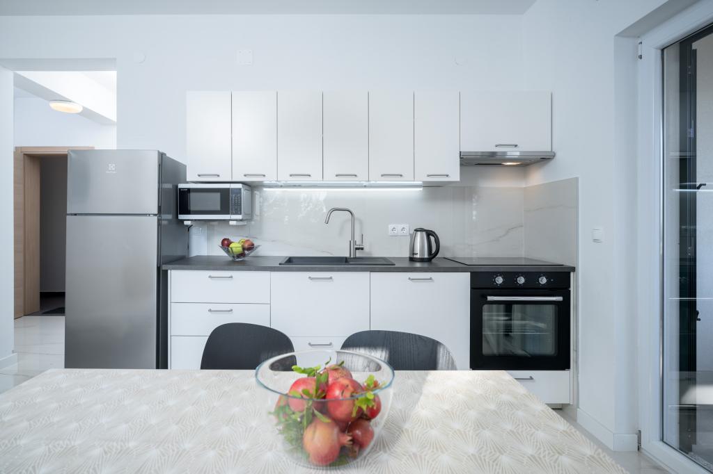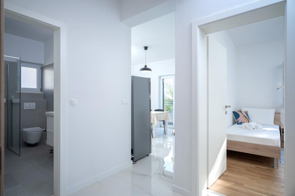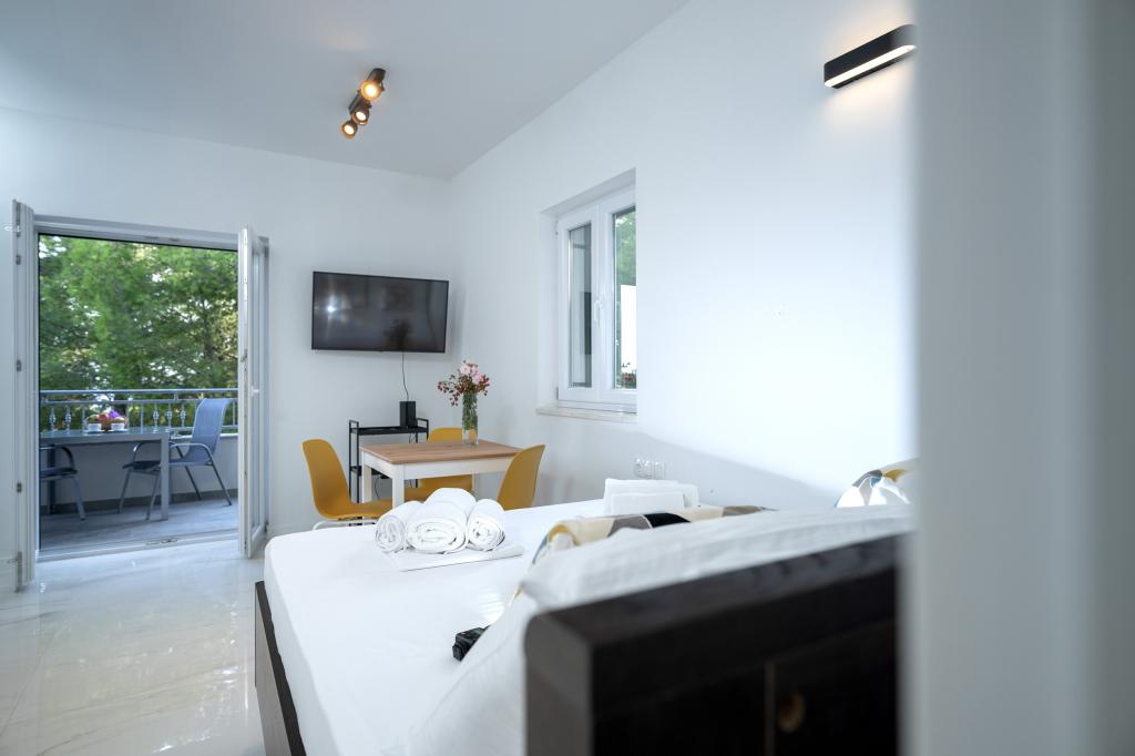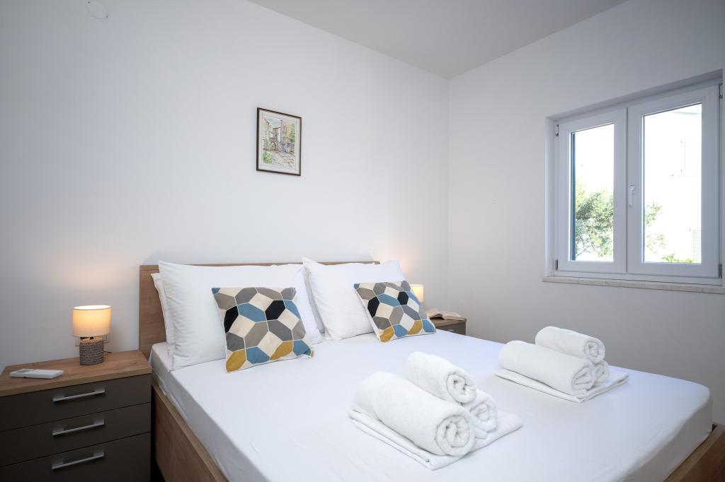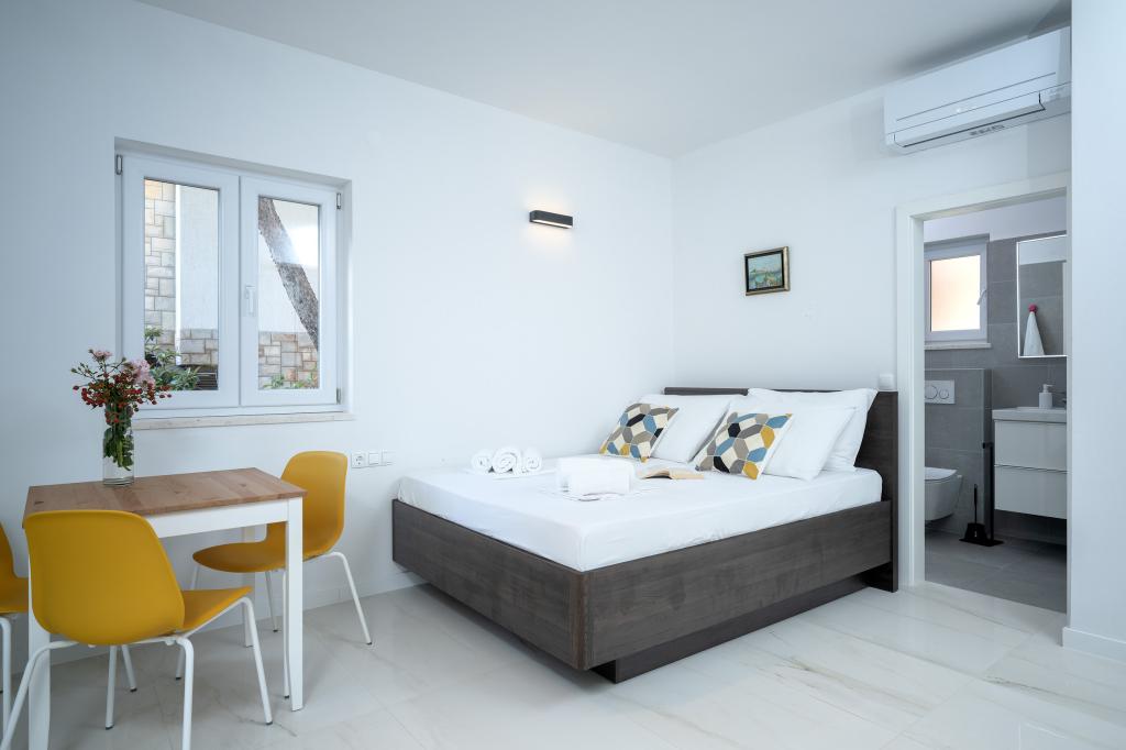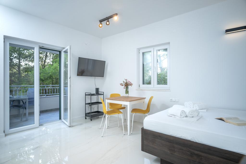 Moderne og komfortabelt indrettede nye lejligheder i Ivan Dolac. De er beliggende i en rolig del af landsbyen med familiehuse, kun få minutters gang til stranden. Der er to lejligheder og en studielejlighed i bygningen.