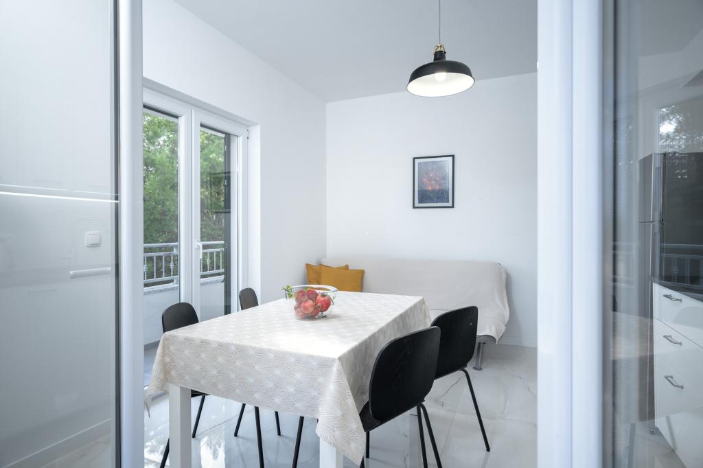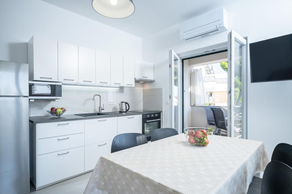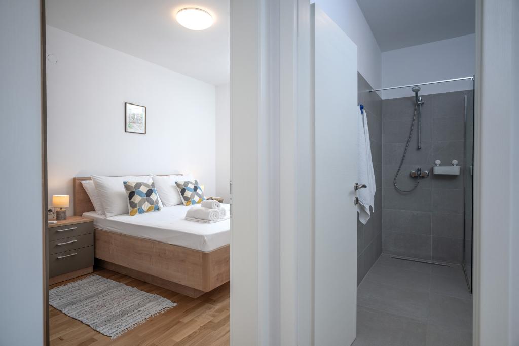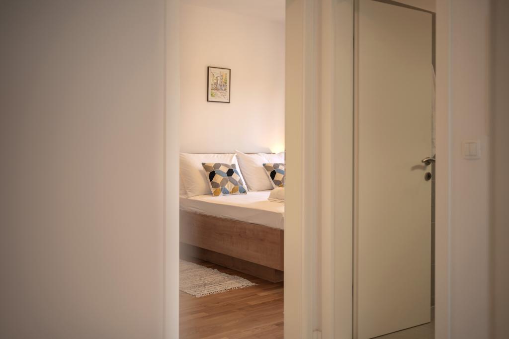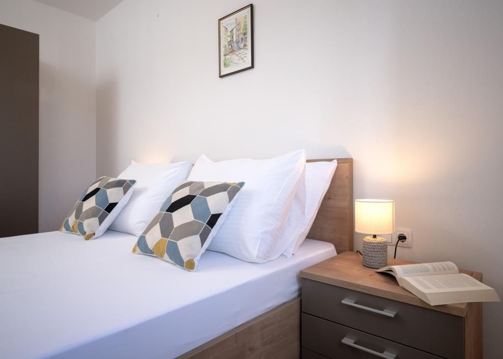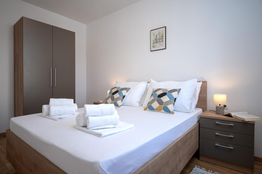 Moderne og komfortabelt indrettede nye lejligheder i Ivan Dolac. De er beliggende i en rolig del af landsbyen med familiehuse, kun få minutters gang til stranden. Der er to lejligheder og en studielejlighed i bygningen.