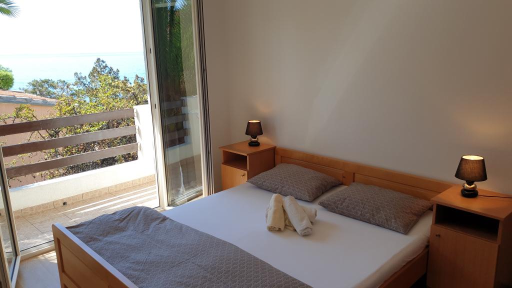 Lejligheder med smuk udsigt over havet ligger lige ud til stranden i Ivan Dolac. Det er også selve centrum af en rolig turistby, der er ideel for familier med børn på grund af nærheden til stranden, kun 10 meter fra huset, bager 40 m, butik 100 m, cafe og restaurant 20 m. I kælderen af huset er der vores souvenirbutik og vinbutik. - Lille lejlighed A3 består af køkken med spisebord og sovesofa, soveværelse med dobbeltseng, badeværelse med bruser, entré og terrasse. En smuk udsigt over havet og stranden kan ses fra næsten hele lejligheden. Lejligheden ligger på 1. sal i huset, ligesom lejligheden. A4. - Stor lejlighed A4 består af køkken med spisebord og sovesofa, to soveværelser med dobbeltseng, badeværelse med bruser, entré og terrasse. Der er udsigt over havet fra køkkenet, et soveværelse og terrassen.