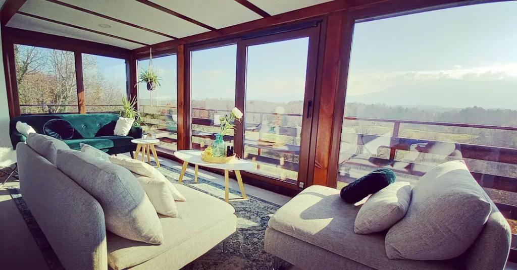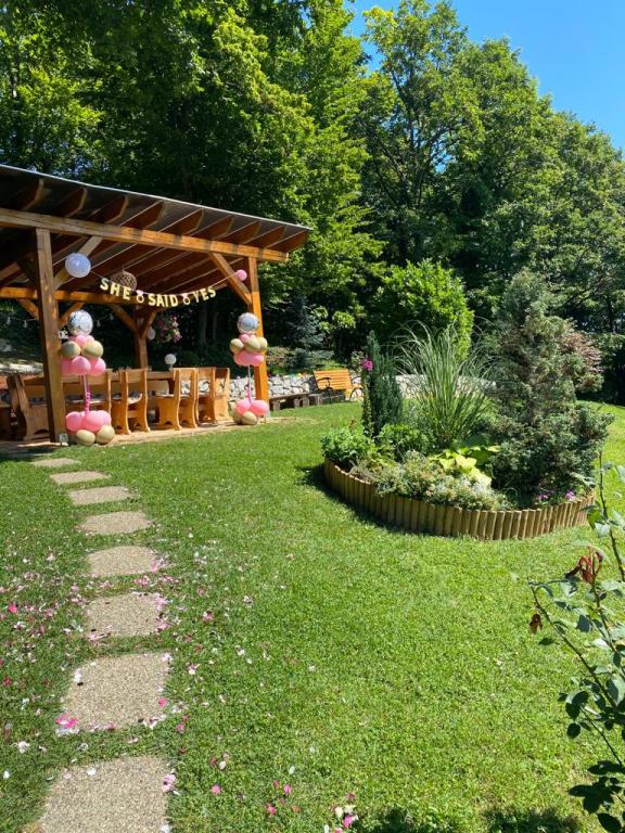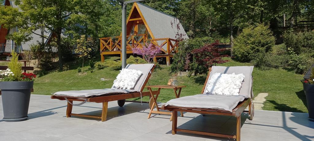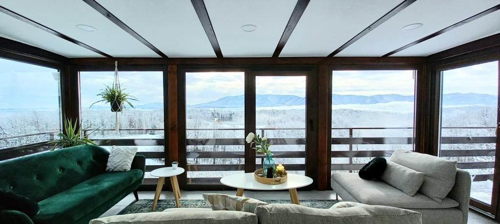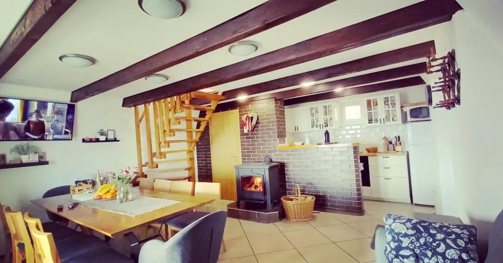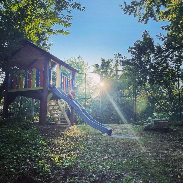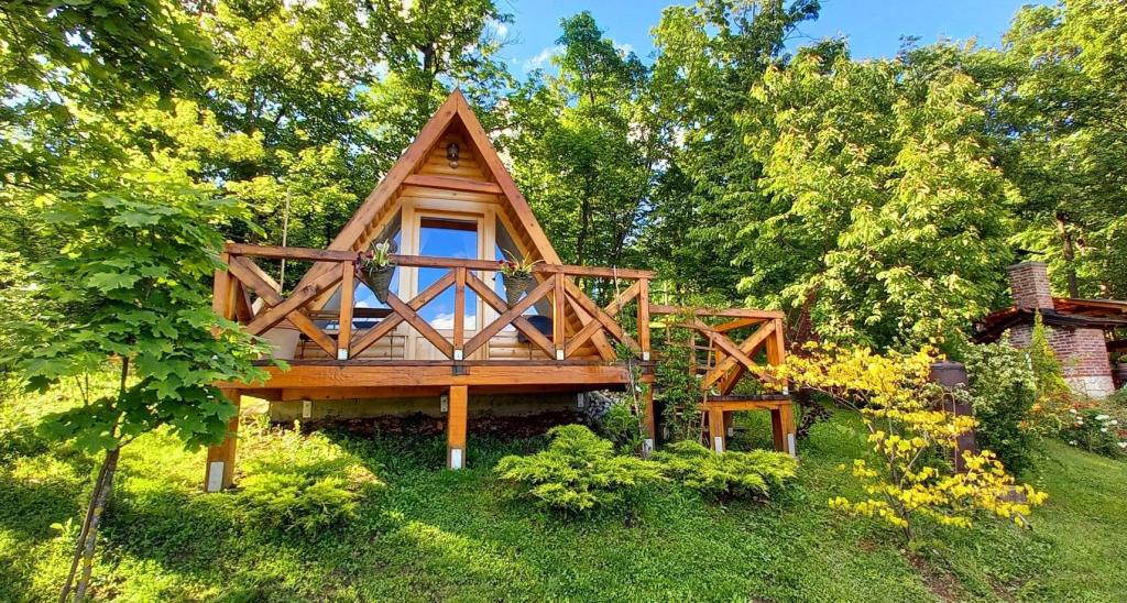 Nyd og hvil i feriehuset () og lige ved siden af \glamping\ huset, alt omgivet af en skov, i 305 meter over havets overflade. Gården med en smuk udsigt over Ivanščica-bjerget indeholder en stor overdækket terrasse med stor grill/ovn og egen ler-tennisbane med belysning til rådighed for prisen. Huset har to soveværelser, en stue med brændeovn og et bord til 12 personer, et badeværelse og et fuldt udstyret køkken, og det smukke glampinghus har et soveværelse og eget badeværelse! Et bord til bordtennis, komplet grilludstyr, cykler og meget mere er også til rådighed. Hunde og faste kæledyr er velkomne :)