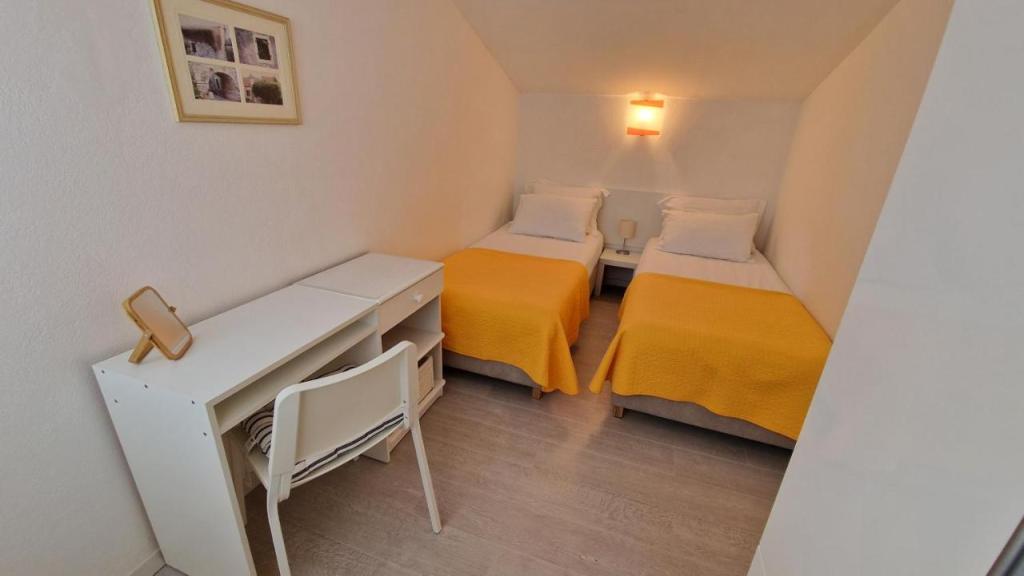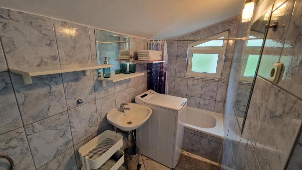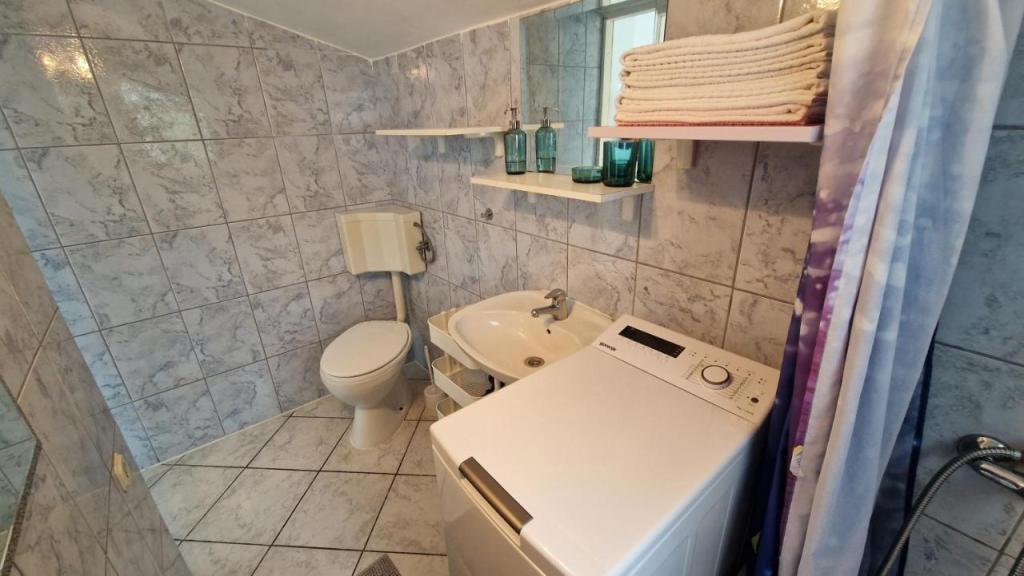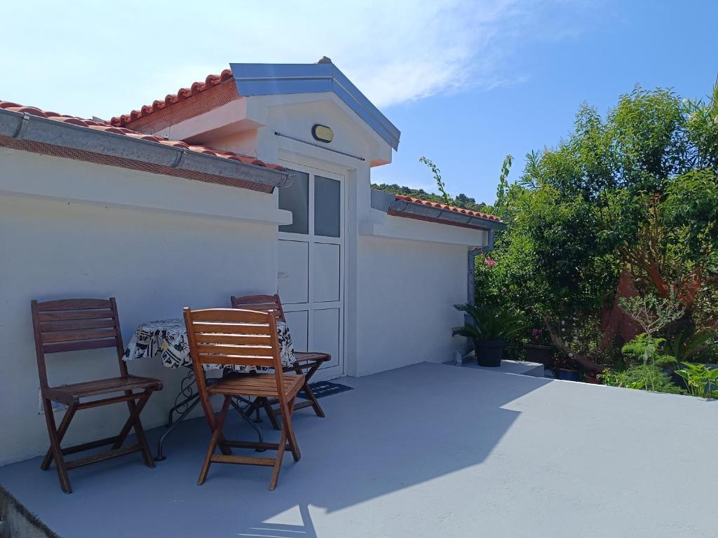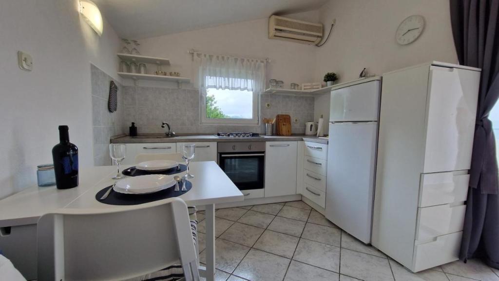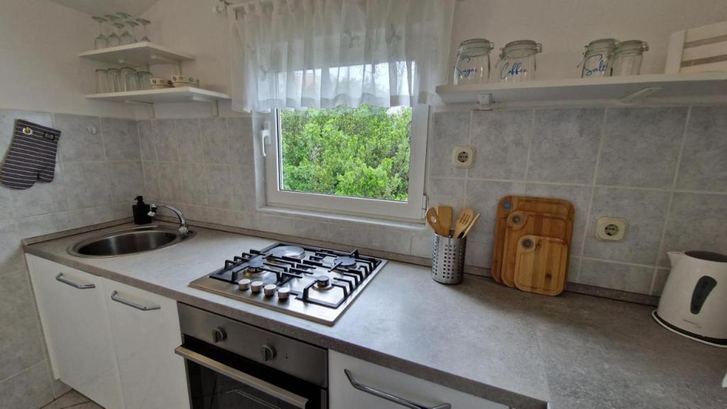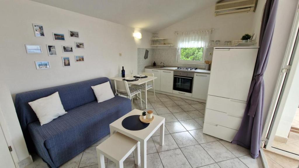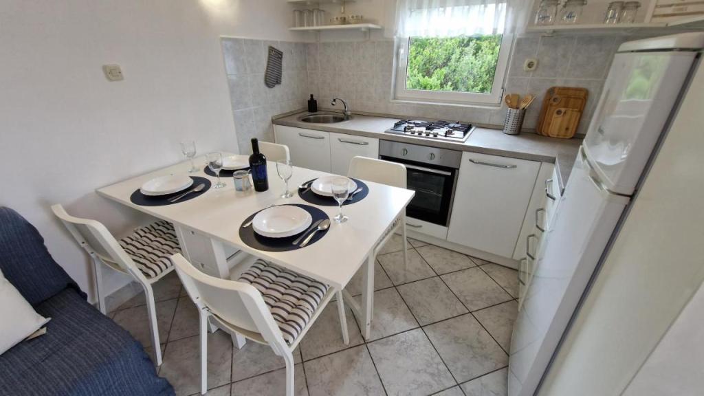 Nyd din ferie kun 5 meter fra havet i den rolige Knež-bugt på øen Iž. Denne komfortable lejlighed med to soveværelser tilbyder en rummelig terrasse med en smuk udsigt over havet og Zadar-øgruppen - ideel til morgenkaffe eller aftenafslapning. Lejligheden har aircondition og er fuldt udstyret til et behageligt ophold: et køkken med alle nødvendige faciliteter, en vaskemaskine, gratis WiFi, et tv, et skrivebord, en komfortabel stue og et privat badeværelse. Gæsterne kan også benytte gratis parkering i nærheden. Der er grill på bagterrassen. Lejligheden ligger i rolige og afslappende omgivelser og er et perfekt valg for familier og alle, der søger en fredelig ferie ved det krystalklare hav.