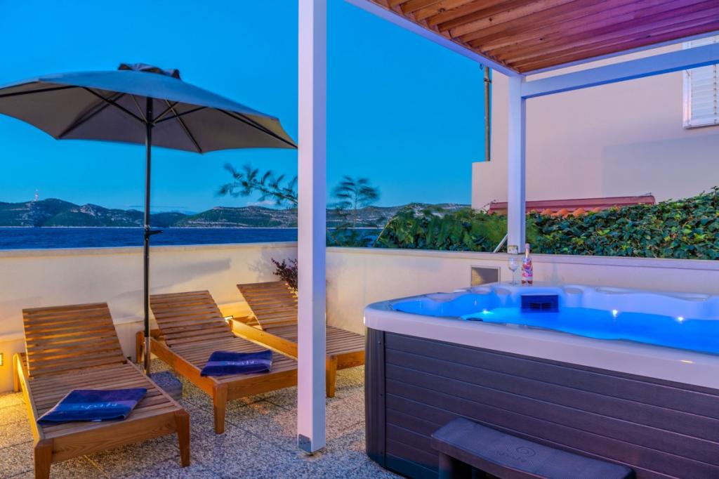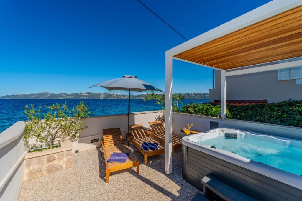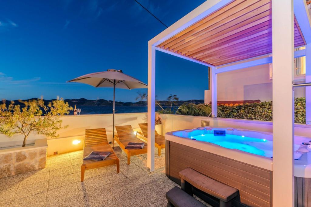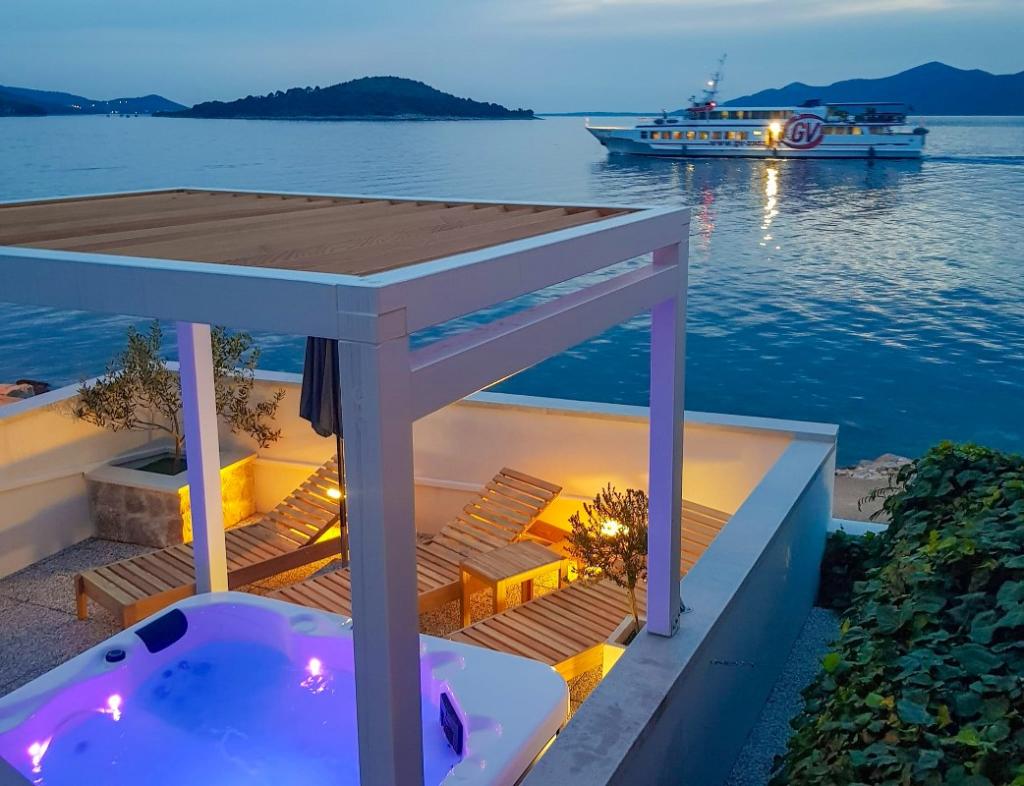 Vores to nyrenoverede lejligheder med jacuzzi (200x200 - til 5 personer) er beliggende i en ideel beliggenhed (første række til havet) for alle elskere af fred, havro, kystgrønt og uberørt natur. Ud over en privat, naturlig strand foran bygningen med parasoller og liggestole og trapper for bedre adgang til havet, har nogle lejligheder altan med udsigt over havet og nogle har en stor terrasse med grill. I hver af de 2 lejligheder er der fuldt udstyret køkken med stue, badeværelse og soveværelse A1 med balkon (3 1), A2 med terrasse (3 1). Lejlighederne har en charme af enkelhed og sommer afslappethed, der vil slappe af i starten. En sti langs havet fører fra bygningen til et nærliggende marked og en restaurant med Robison-look og ægte dalmatisk gourmetmad. Veli Iž ligger kun få minutter væk i bil. Der kan du finde et posthus, en lystbådehavn, restauranter og et marked. På hele øen, selv foran lejligheden, kan du opdage magien ved fiskeri. Garanteret fred og nydelse!