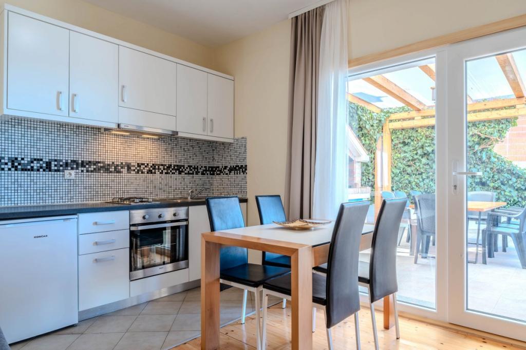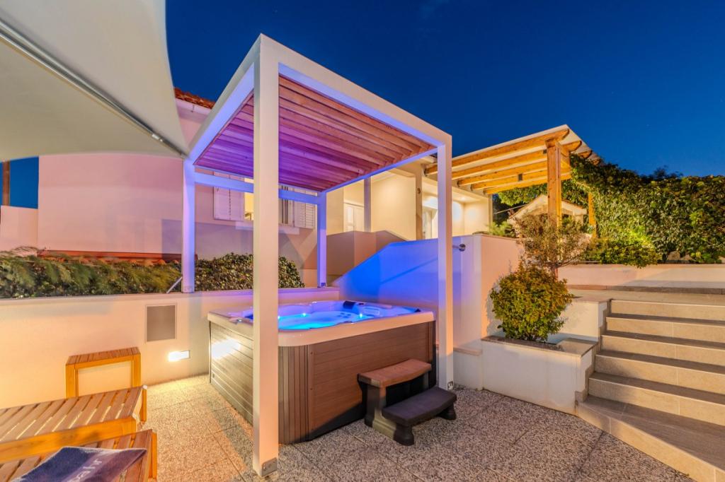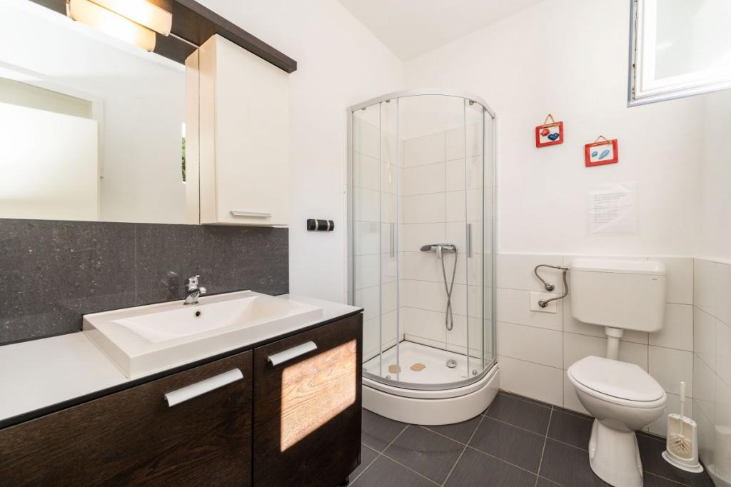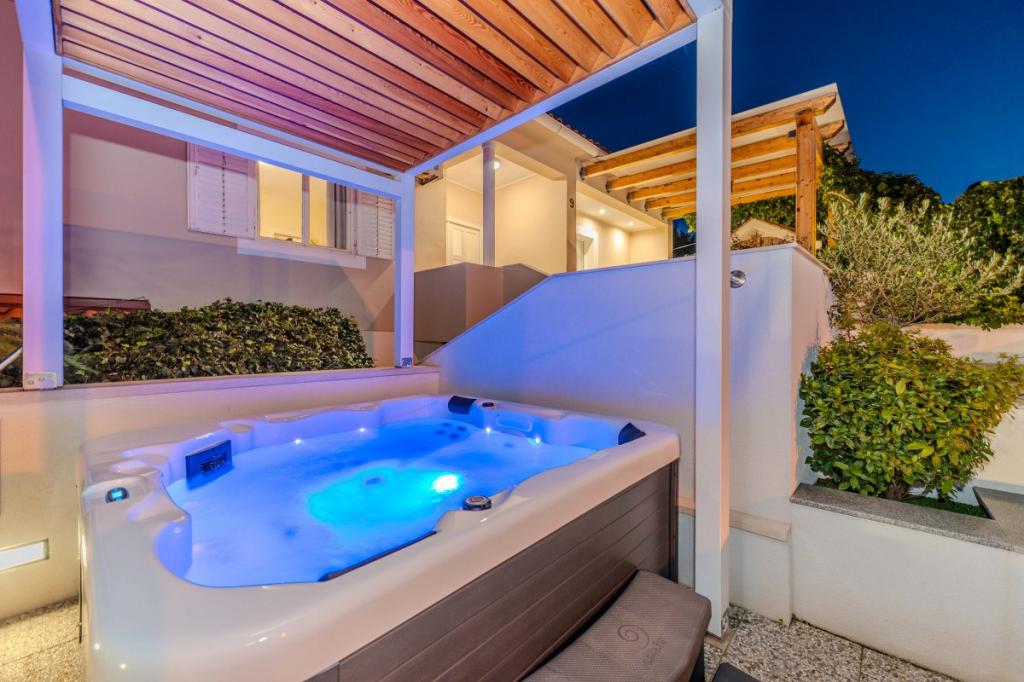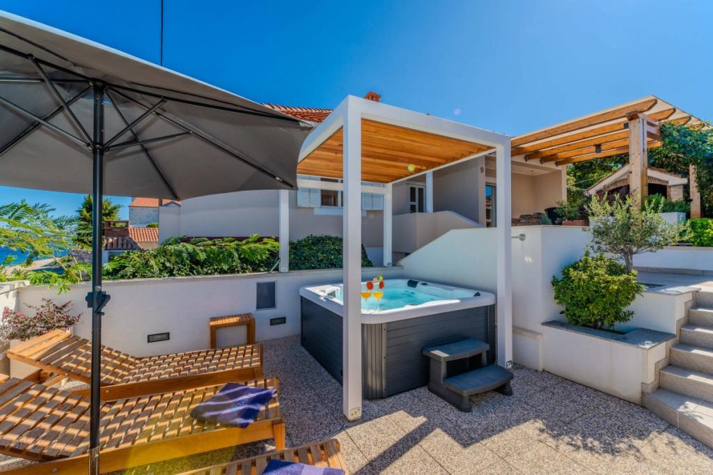 Vores to nyrenoverede lejligheder med jacuzzi (200x200 - til 5 personer) er beliggende i en ideel beliggenhed (første række til havet) for alle elskere af fred, havro, kystgrønt og uberørt natur. Ud over en privat, naturlig strand foran bygningen med parasoller og liggestole og trapper for bedre adgang til havet, har nogle lejligheder altan med udsigt over havet og nogle har en stor terrasse med grill. I hver af de 2 lejligheder er der fuldt udstyret køkken med stue, badeværelse og soveværelse A1 med balkon (3 1), A2 med terrasse (3 1). Lejlighederne har en charme af enkelhed og sommer afslappethed, der vil slappe af i starten. En sti langs havet fører fra bygningen til et nærliggende marked og en restaurant med Robison-look og ægte dalmatisk gourmetmad. Veli Iž ligger kun få minutter væk i bil. Der kan du finde et posthus, en lystbådehavn, restauranter og et marked. På hele øen, selv foran lejligheden, kan du opdage magien ved fiskeri. Garanteret fred og nydelse!