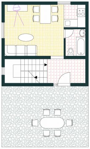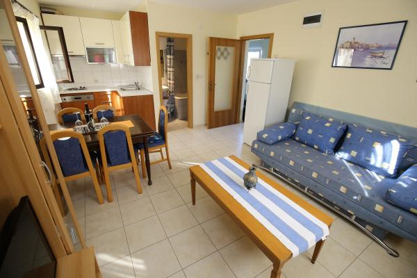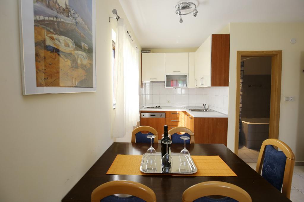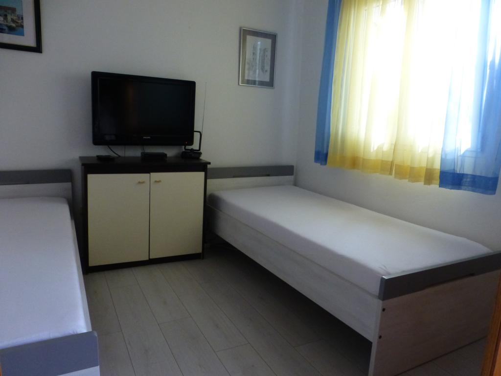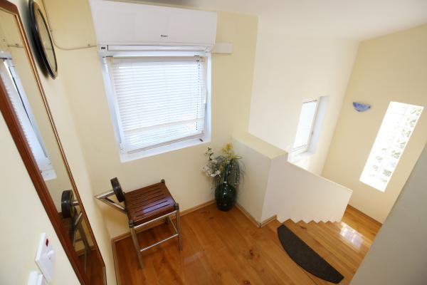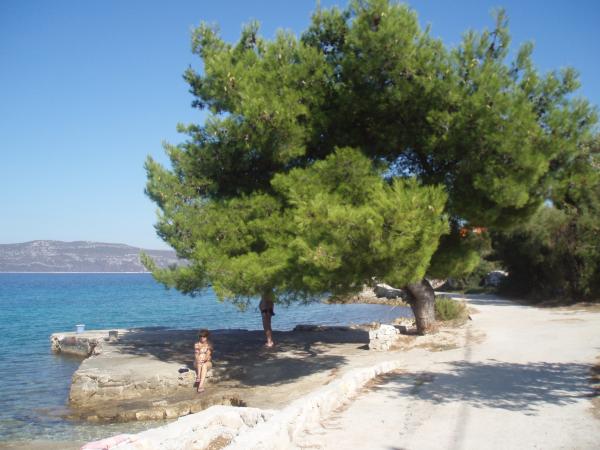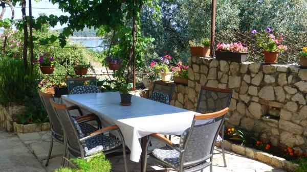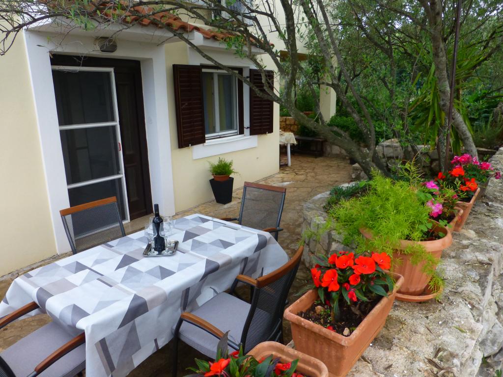Lejlighed som et separat bolighus i et roligt område i Mali Iž, 200 meter fra færgehavnen med separat parkeringsplads. Den stueetagen lejlighed har en stue med køkken og badeværelse, som kan bruges som et separat værelse eller studio lejlighed, og i stueetagen er der 2 værelser og et badeværelse. En separat gård med grill til en hel dag ophold. Afstanden fra stranden er 5 minutters gang. Sikker kaj til båd og parkering til stier ,, wifi internet.