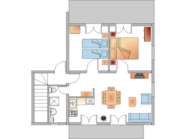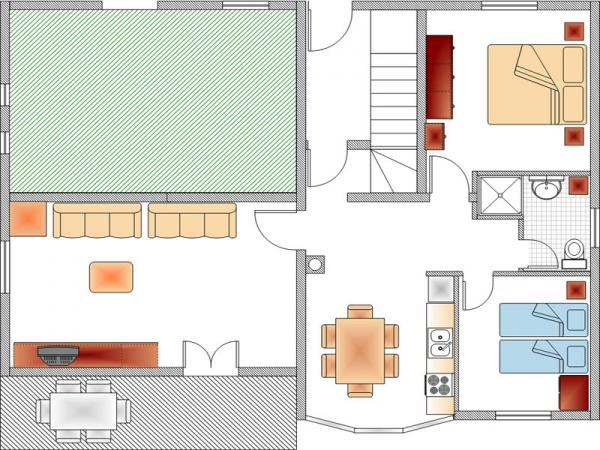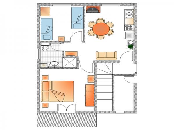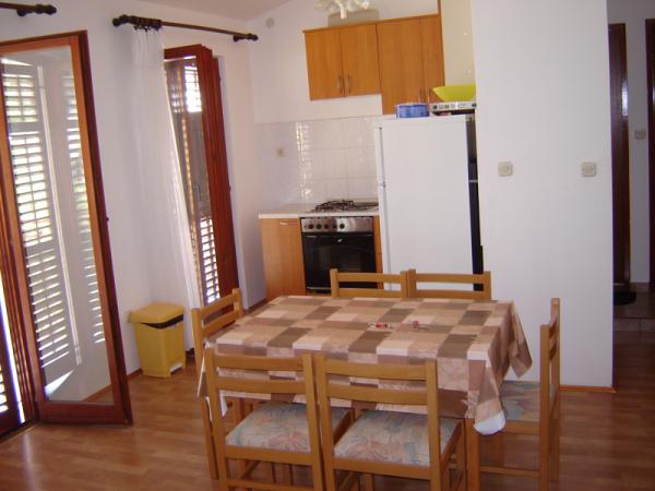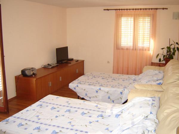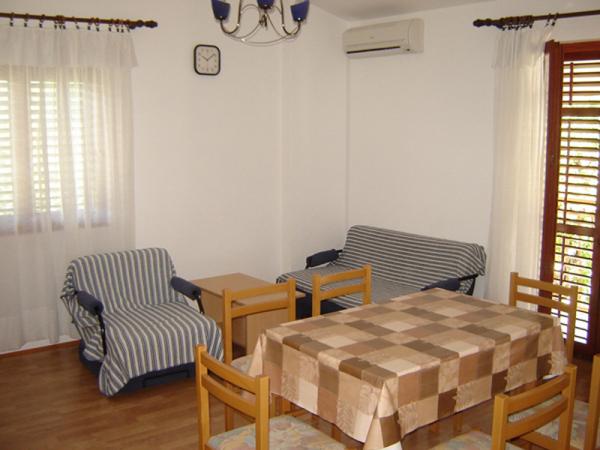 Huset ligger i et roligt og afsondret sted kun 150 meter væk fra havet, centrum og forretningen. Ved døren til huset er der adgang med bil og parkering tilbydes i gården. Moderne udstyret lejligheder med alle nødvendige faciliteter for et behageligt ophold og en god ferie. Der er tre separate lejligheder og et større firma. De to lejligheder er to-værelses med køkken og stue (A-1 og A-2), mens den tredje (A-3) tre-sengs lejlighed. Til din bil gratis parkering i gården.