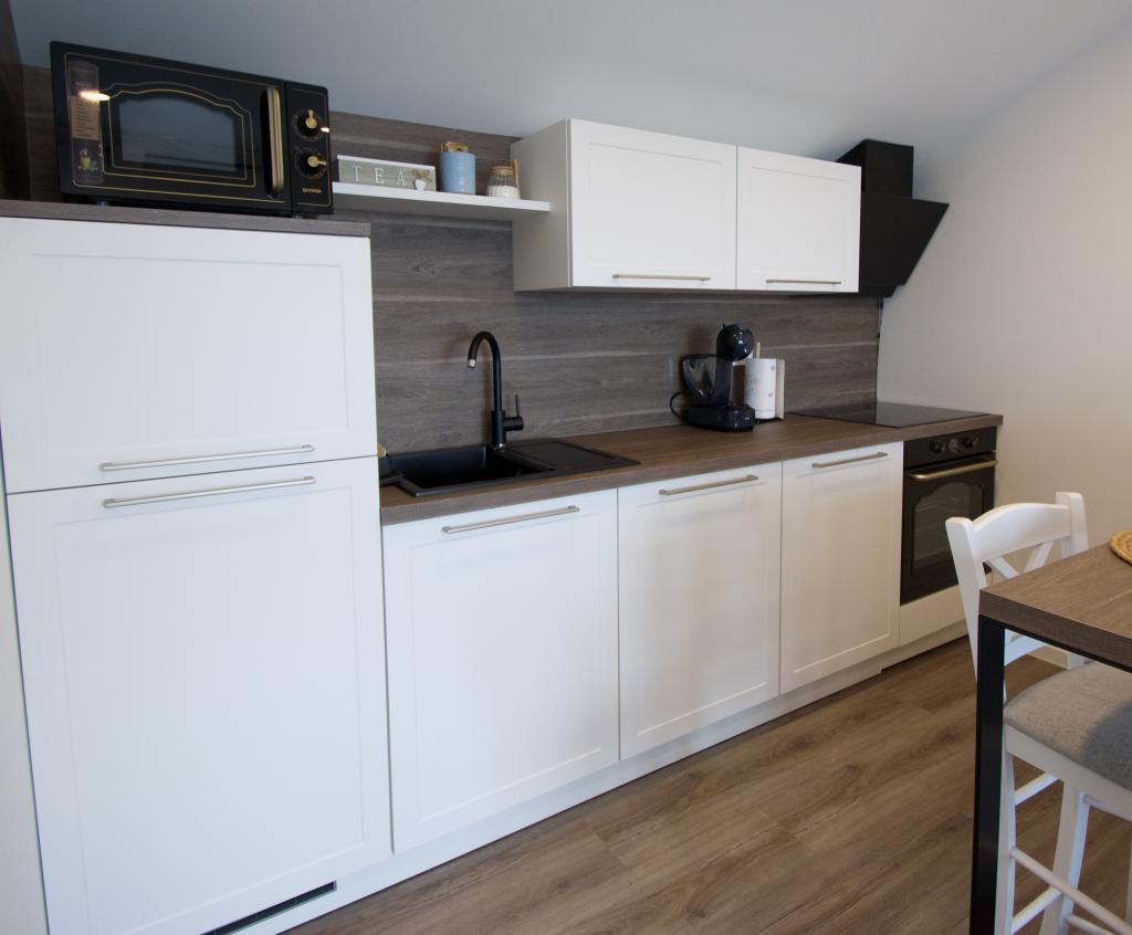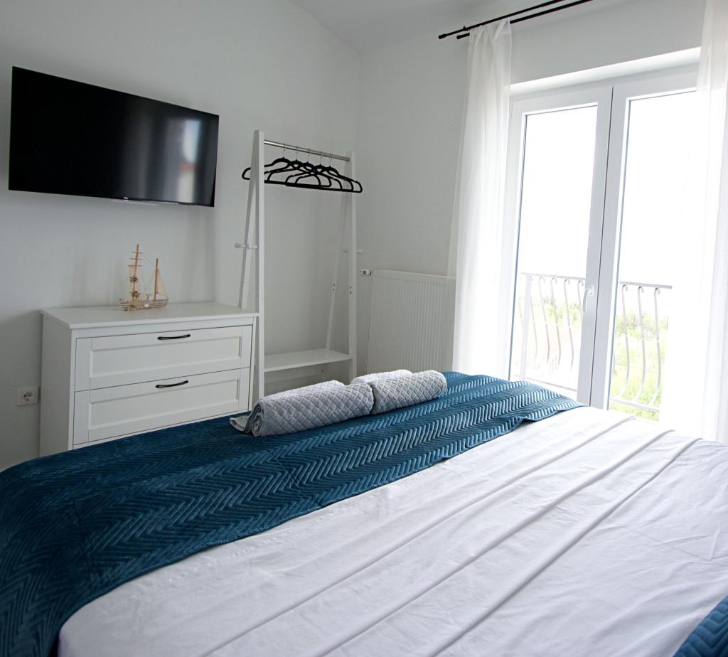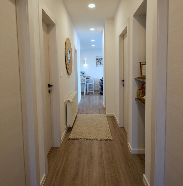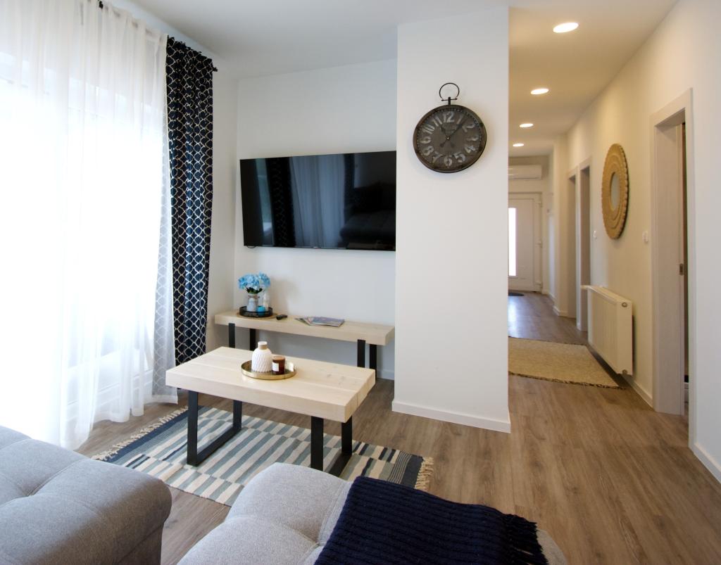 Velkommen til vores Blue Horizon lejlighed. Interiøret er omhyggeligt designet med moderne detaljer suppleret med varme, naturlige elementer, hvilket skaber en følelse af harmonisk luksus. Den rummelige stue inviterer dig til at slappe af på den komfortable sofa, mens du på samme tid nyder udsigten over Adriaterhavets endeløse blå. Vores fuldt udstyrede køkken giver dig mulighed for at tilberede dine egne måltider med de nyeste apparater og tilbehør. Soveværelserne er oaser af fred og komfort, med komfortable senge og frisk sengetøj for at sikre en fredelig nattesøvn efter en lang dag med udforskning af de nærliggende strande og attraktioner. Vores lejlighed har også en rummelig altan, hvor du kan nyde din morgenkaffe eller en afslappet aftendrink med solnedgangen. Den første strand er 300 m væk, restauranten 100 m, og butikken 400 m Nyd hvert øjeblik tilbragt i vores lejlighed ved havet, hvor komfort, luksus og naturens skønhed mødes for at give dig en uforglemmelig ferie.